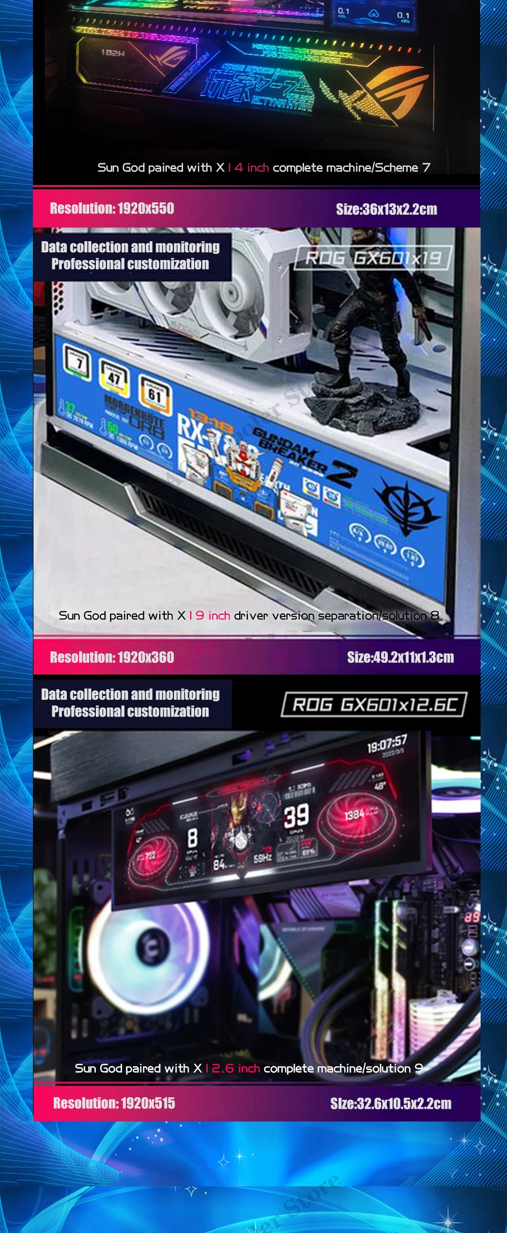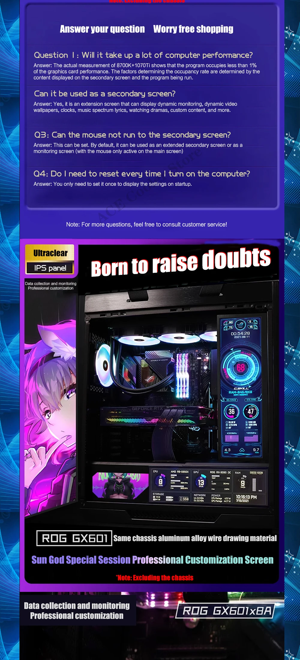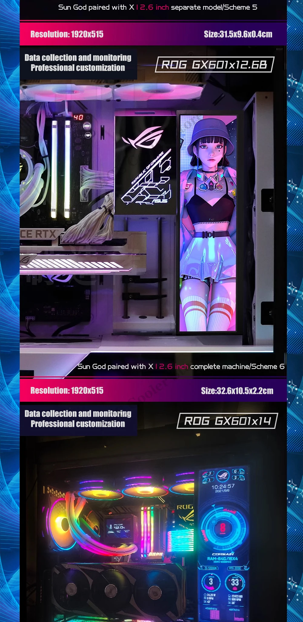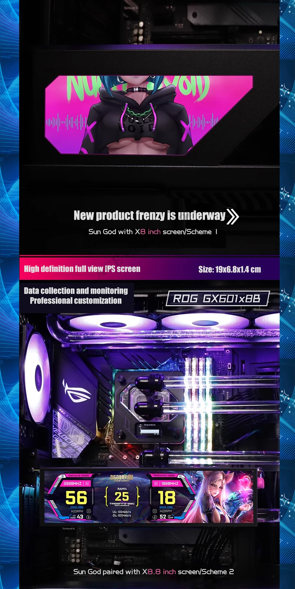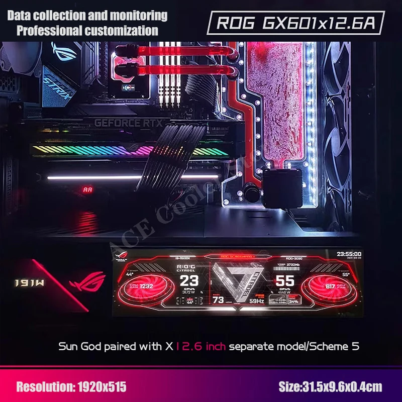 Comprar ROG Strix-Pantalla de Monitor GX601, Panel plano, temas personalizados, AIDA64, 5-19 pulgadas, gabinete de jugador, expansión secundaria, Dsiplay
