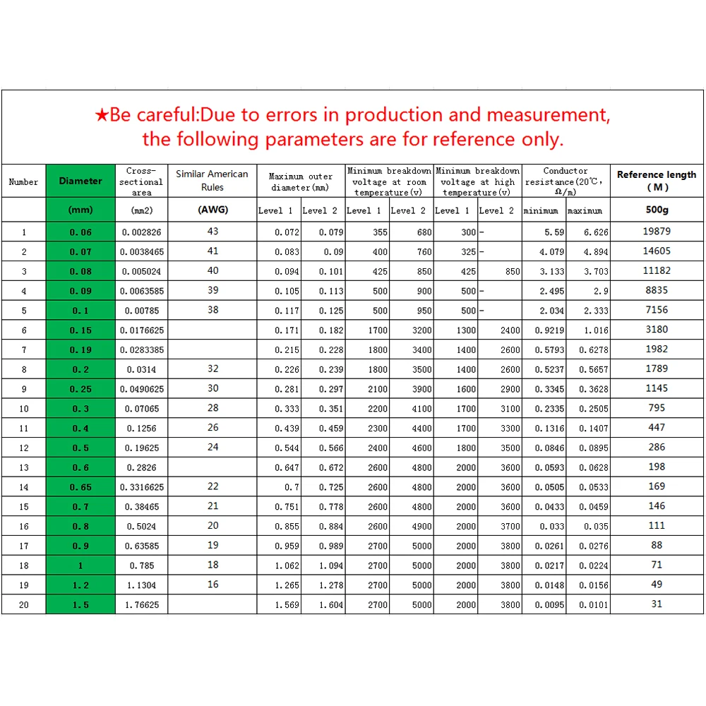 Las especificaciones del alambre esmaltado vendido en nuestra tienda son todas las especificaciones estándar nacionales, que se refieren al diámetro del alambre de cobre desnudo (excluyendo la película de pintura).