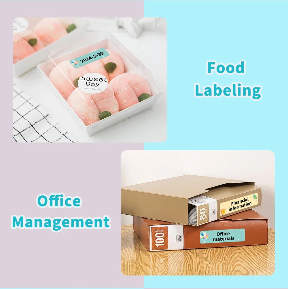 Amplias aplicaciones:Impresión térmicano requiere tintacartucho o tóner.La etiqueta térmica es muy rentable paraminorista, oficina, escuela, hogar, cada caminata de la vida.