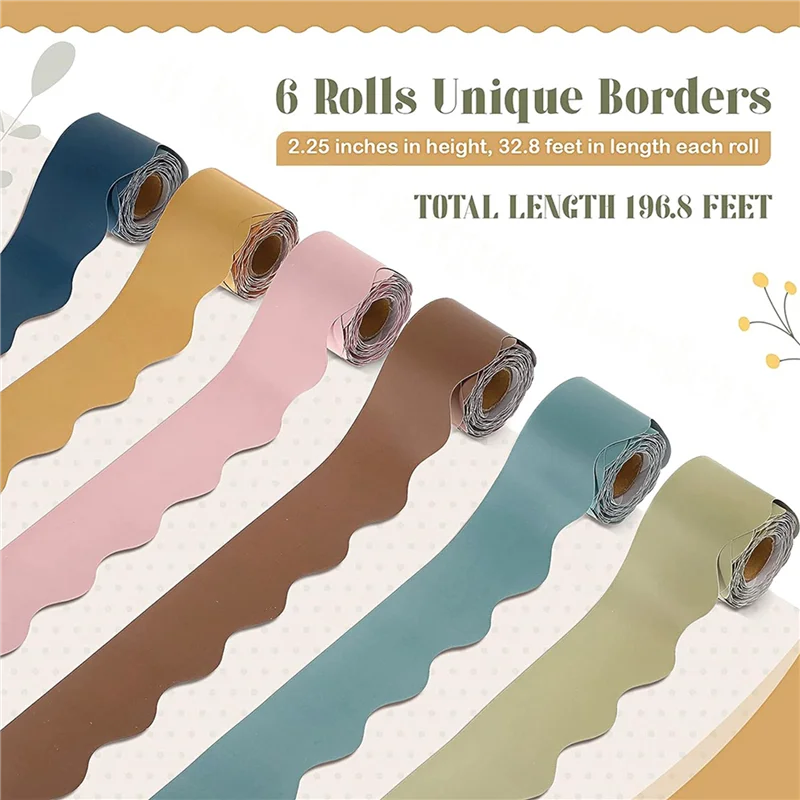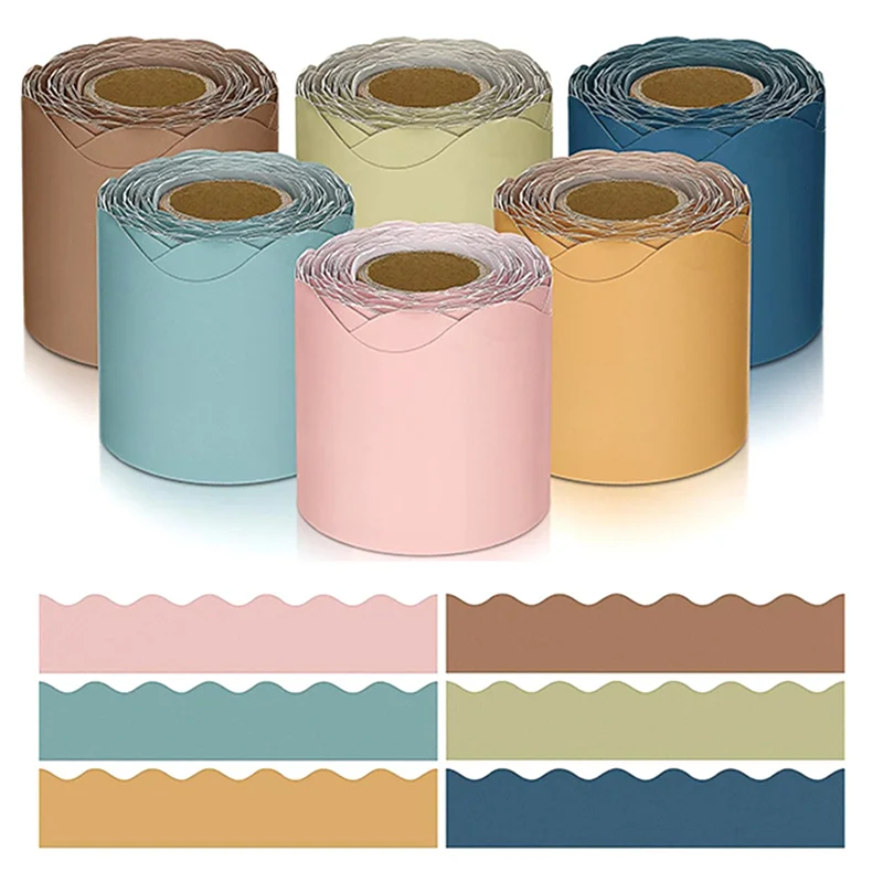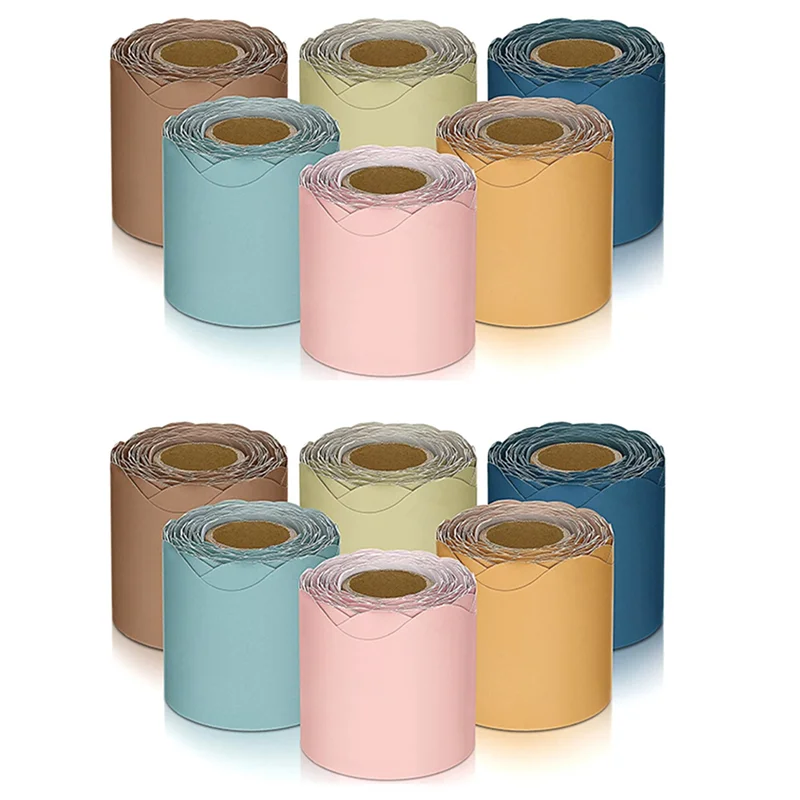 Cantidad adecuada y diversos colores: el paquete incluye 12 rollos de bordes de tableros de anuncios de aula en 6 colores, la cantidad adecuada y diversos colores pueden satisfacer fácilmente sus diversas demandas de decoración, y también puede compartir con su familia y amigos.