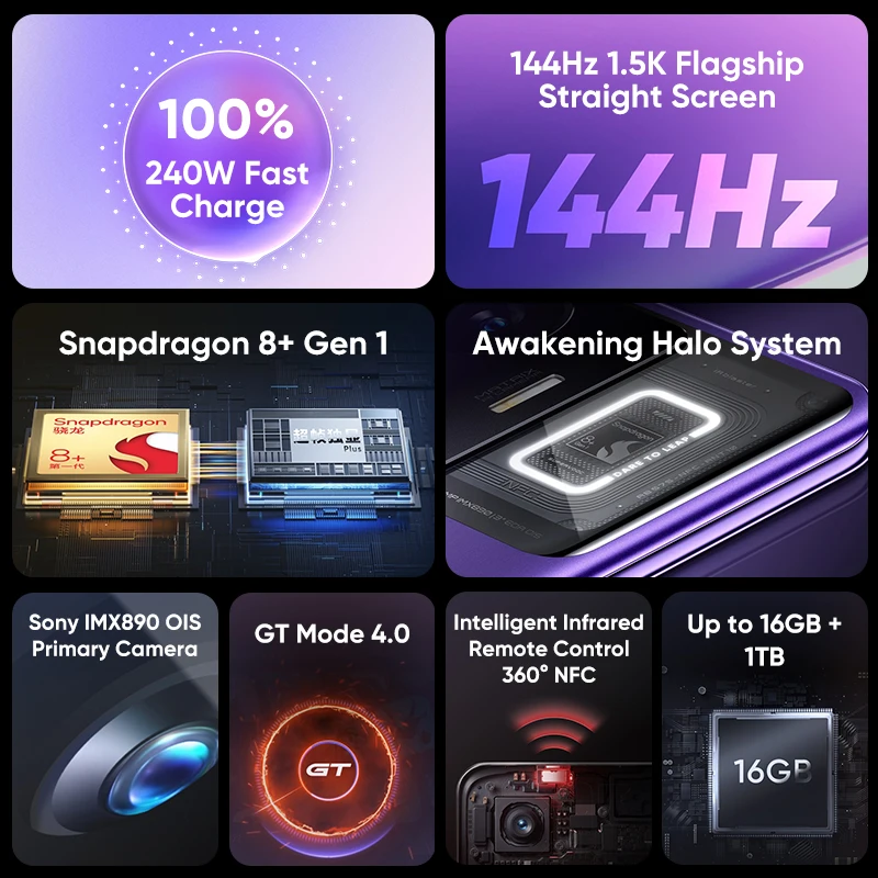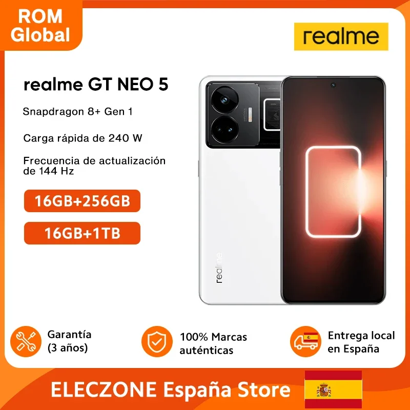 Comprar ROM Global realme GT NEO 5 GT NEO5 5G Snapdragon 8+ Gen 1 240W Carga 144HZ Tasa de refresco 50MP Cámara principal Pantalla 1.5K Teléfono inteligente