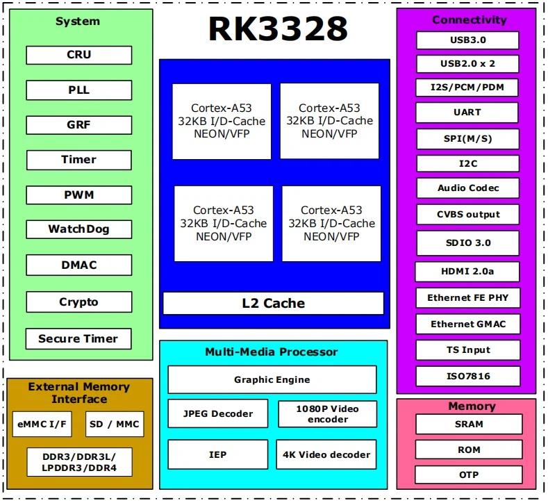 ROCKCHIP RK3328 A53 cuatro núcleos