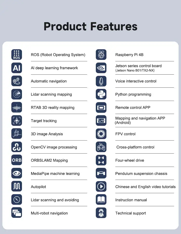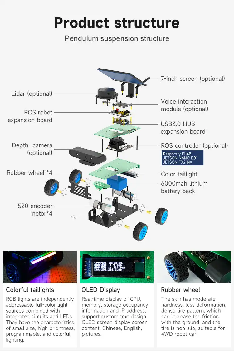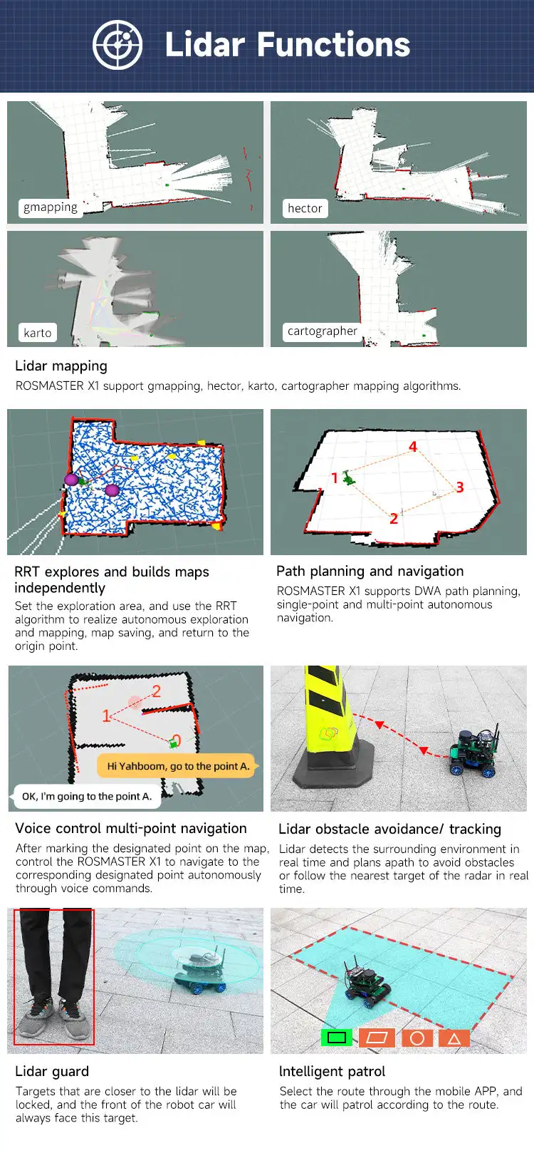 Comprar ROS Robot ROSMASTER X1 Kit de coche no tripulado diferencial de cuatro ruedas Lidar SLAM Mapeo Raspberry Pi Jetson Nano