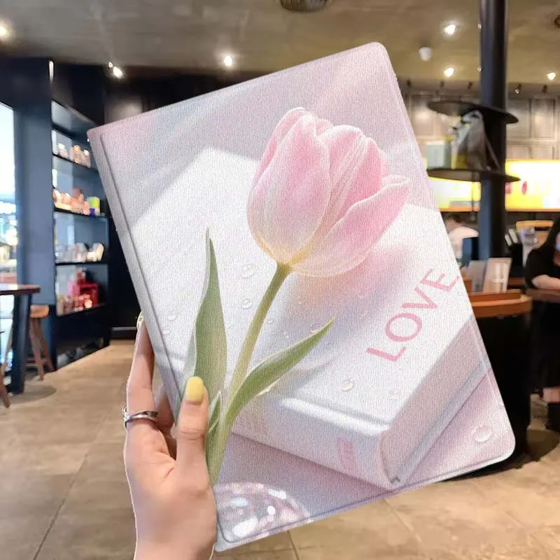 Rosa tulipán libro amor para Samsung Galaxy Tab S11 S10 S9 S8 S7 S6 A10.1 A9 A8 A7 10,1 Lite FE Plus pulgadas funda para tableta