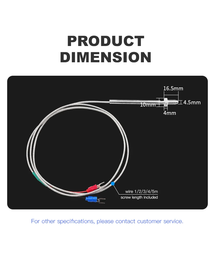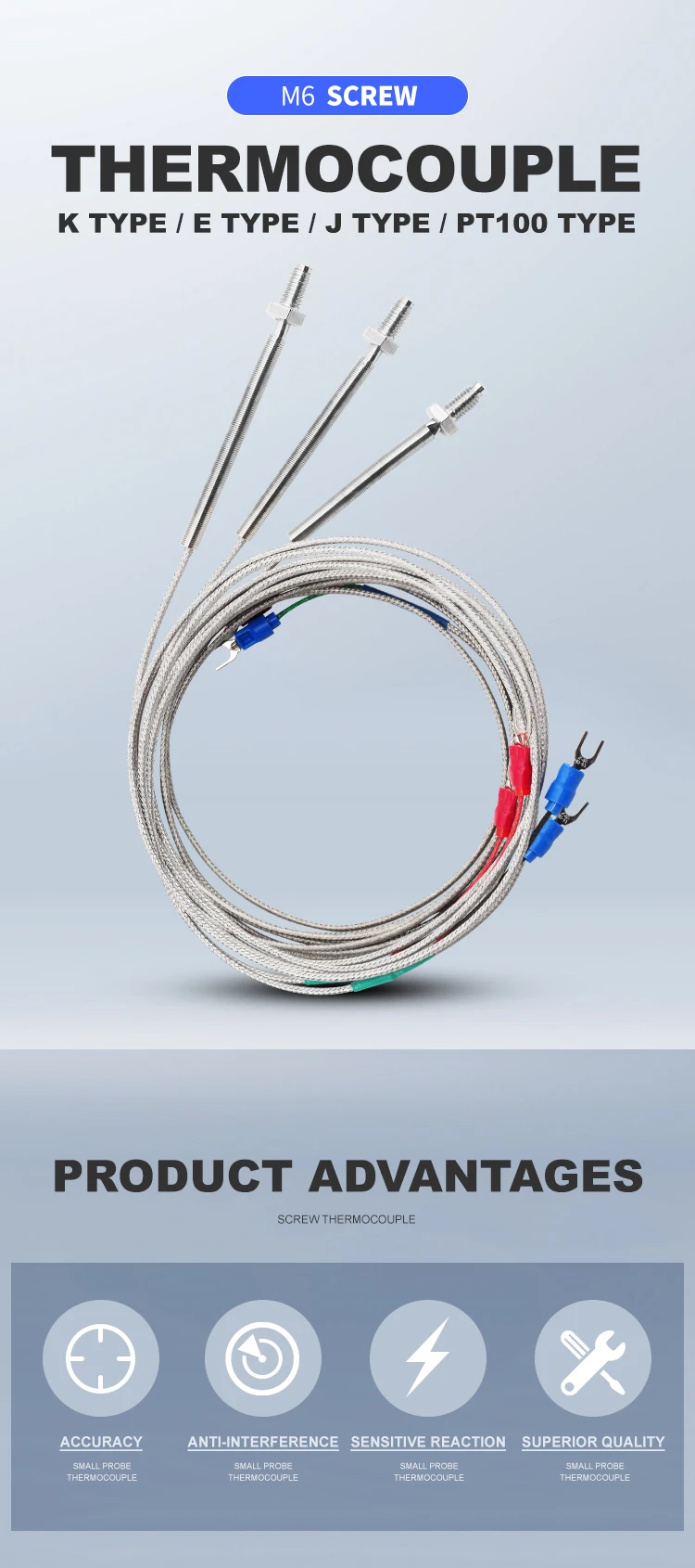 Rosca M6 tornillo termopar paletas objetivos 0,5 m 1 m 2 m 3 m tipo K J PT100 sonda Sensor de temperatura 0-400℃ para termostato digital PID