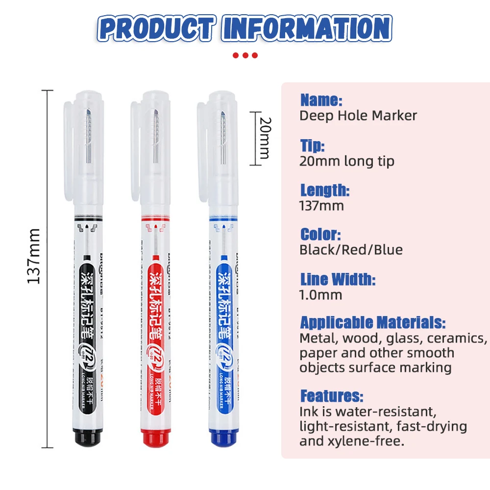 3. La longitud del cabezal de 20mm del producto se puede marcar en agujeros profundos, por lo que es rápido de secar y no es fácil manchar las manos y es impermeable.