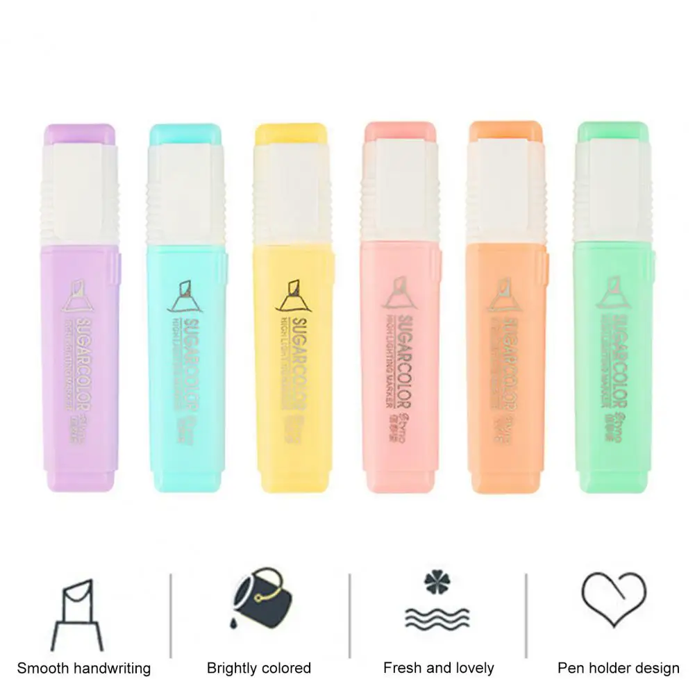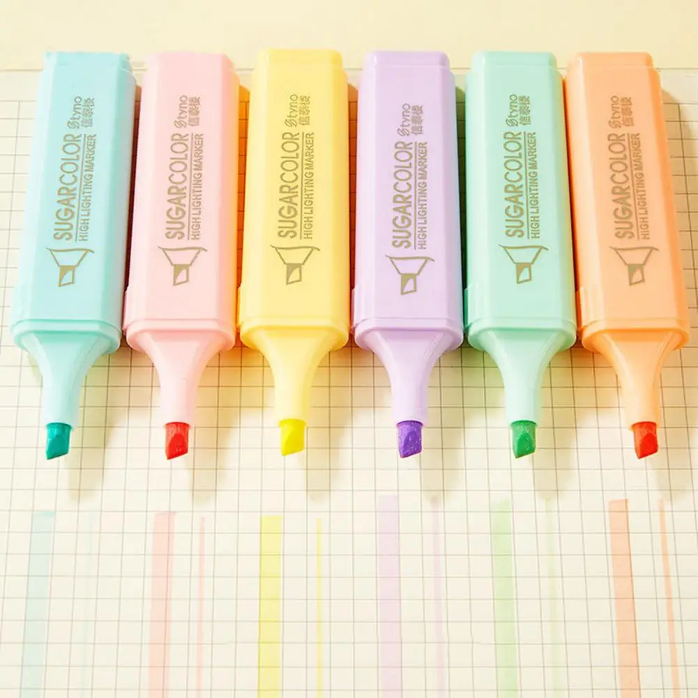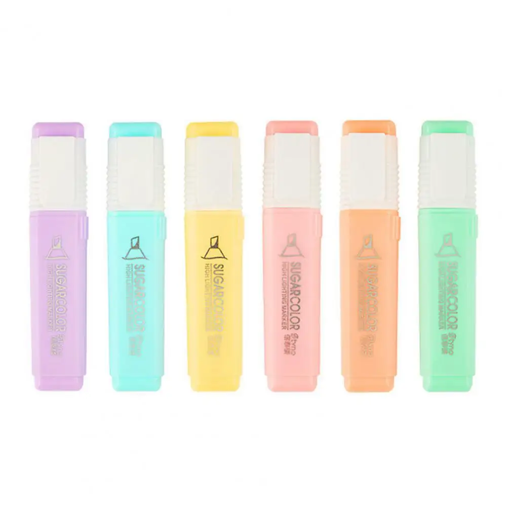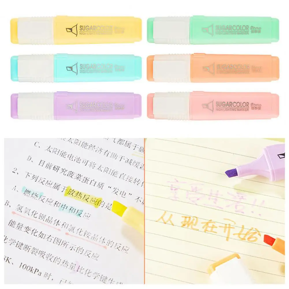 6 unids/set de cincel resaltador de Color caramelo, portátil, sin sangrado, de secado rápido, rotulador fluorescente para estudiantes, suministros escolares y de oficina