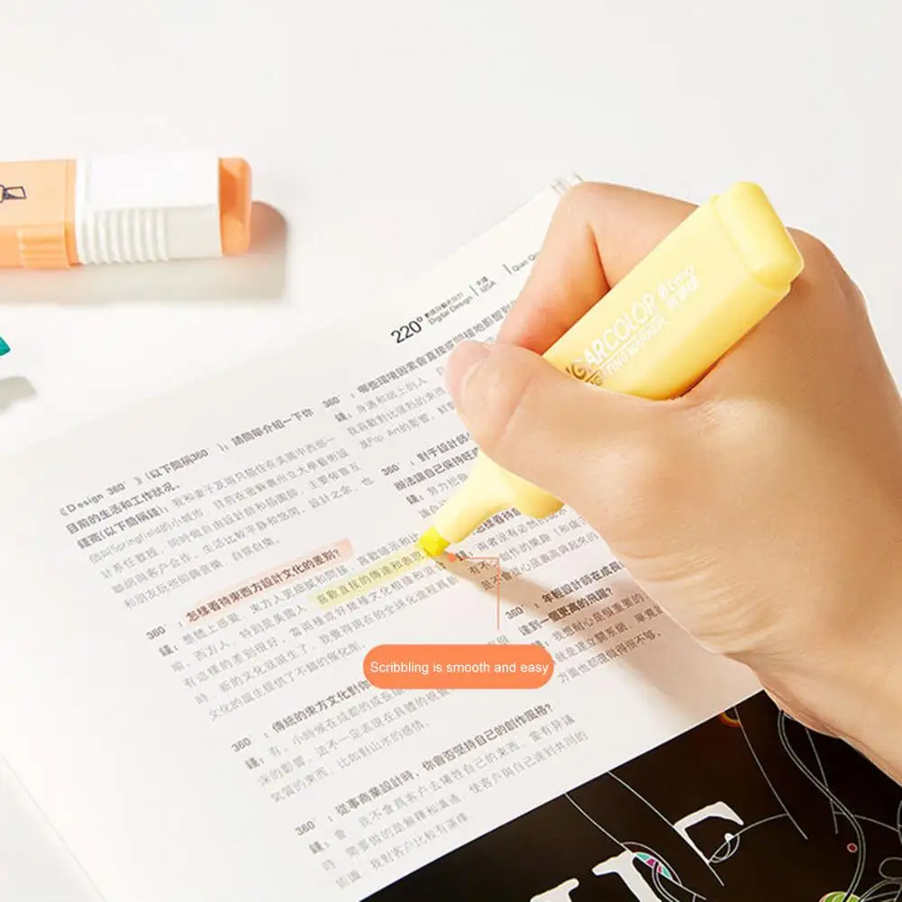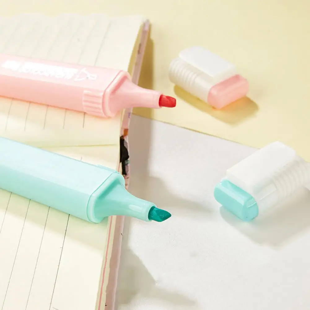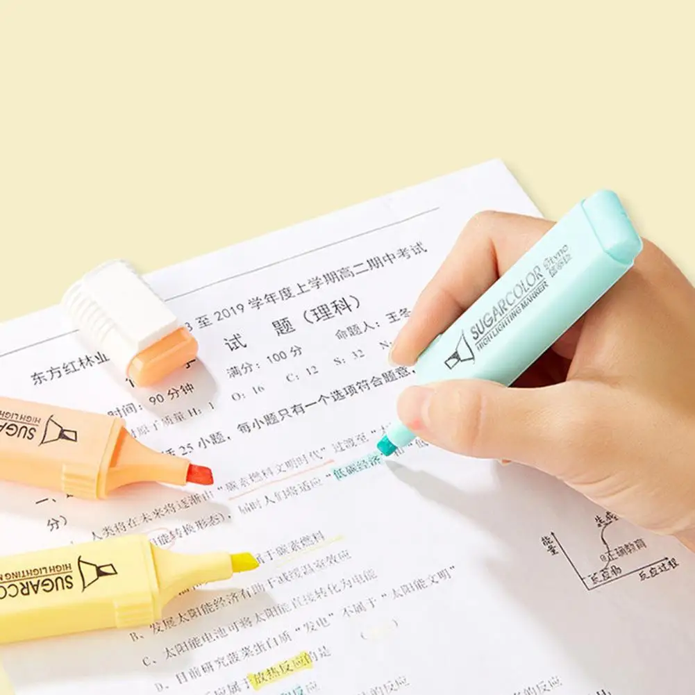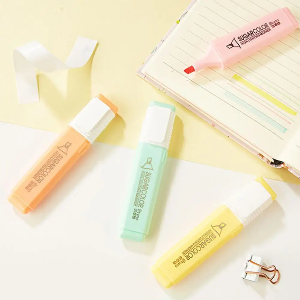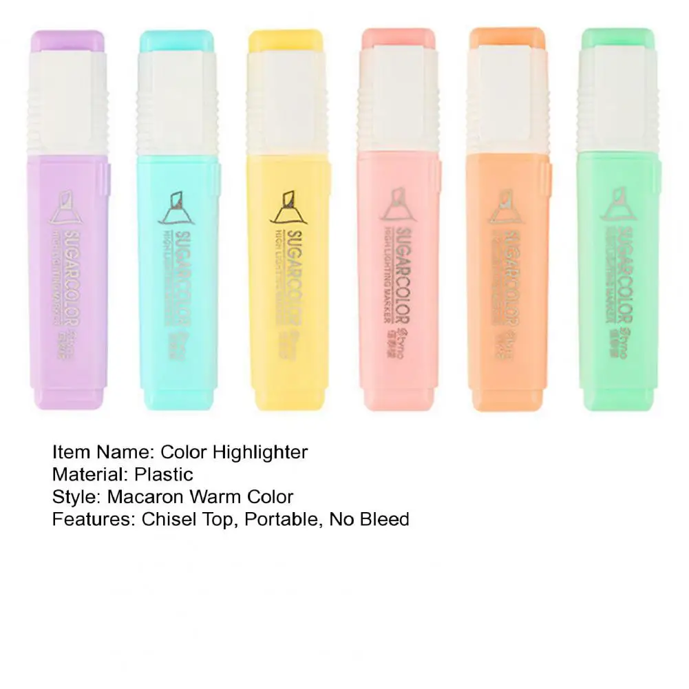 6 unids/set de cincel resaltador de Color caramelo, portátil, sin sangrado, de secado rápido, rotulador fluorescente para estudiantes, suministros escolares y de oficina
