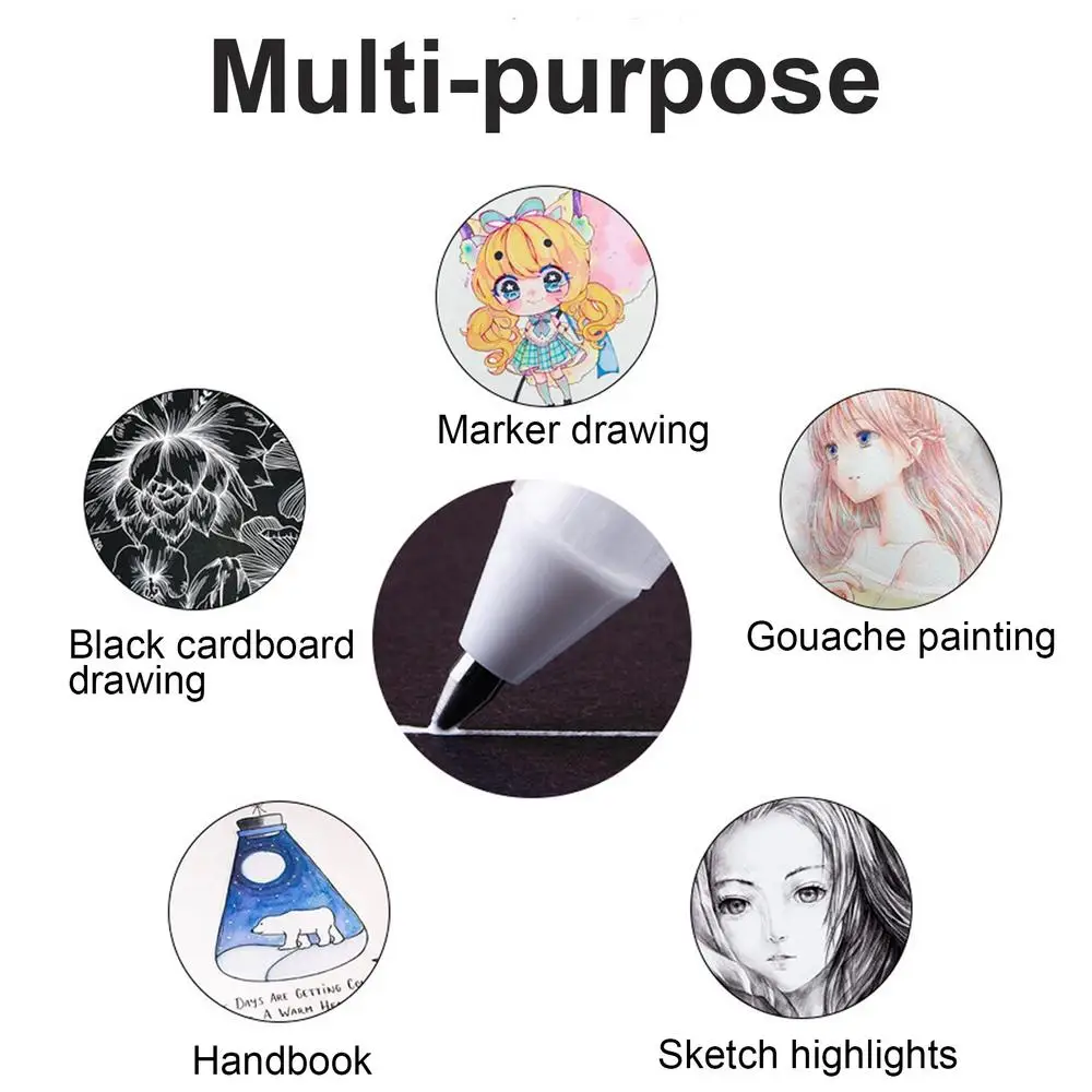 3. Multiusos: perfecto para dibujos y bocetos detallados, este bolígrafo de pintura blanca es imprescindible para colorear, ilustrar y escribir multiusos en papel kraft o sobres negros.