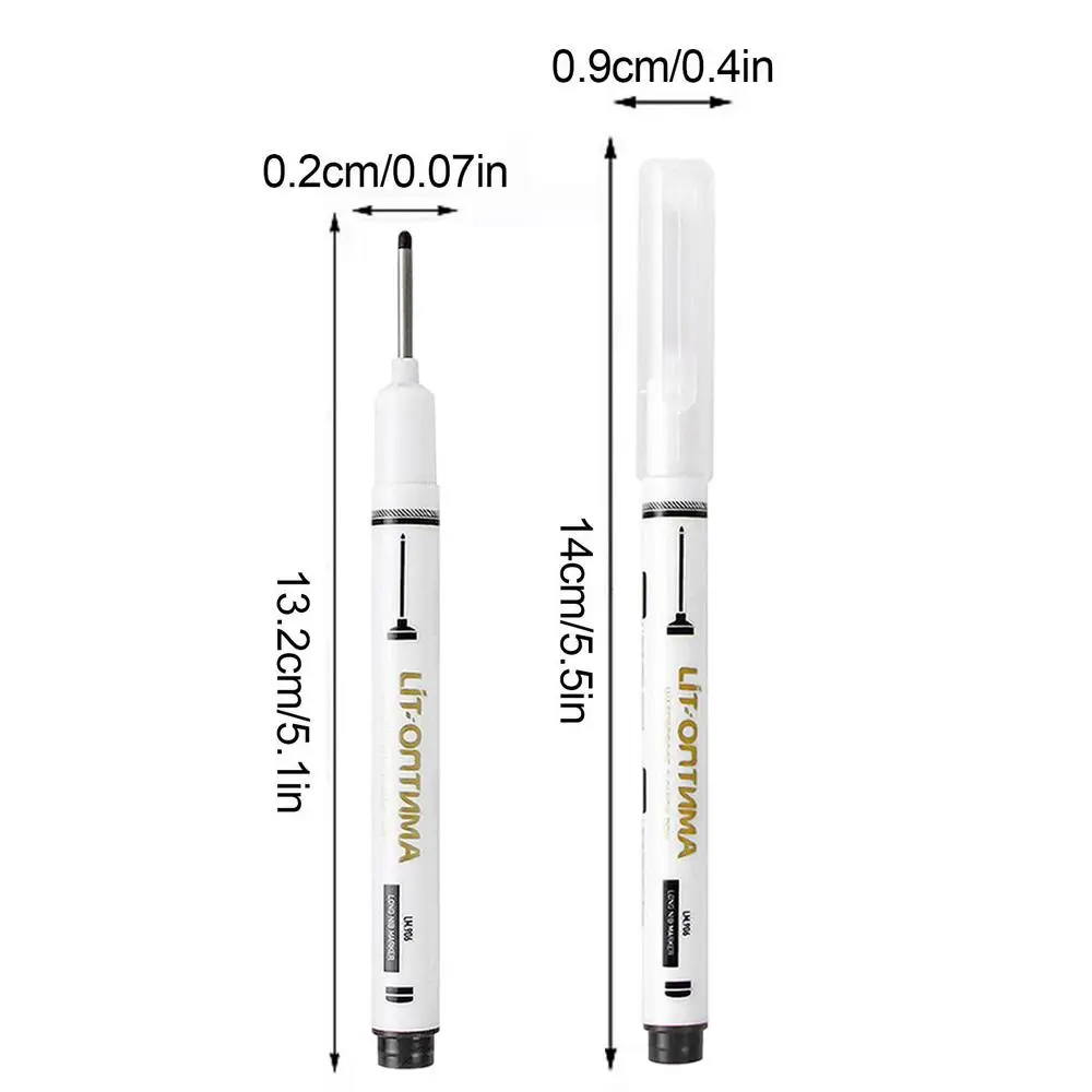 1. Punta de aguja Delgada: logre un dibujo de líneas conveniente y preciso con nuestra Punta de aguja delgada de marcadores de alcance profundo. La herramienta perfecta para marcar agujeros profundos, no tendrá que preocuparse de que las puntas del lápiz sean demasiado cortas o gruesas.