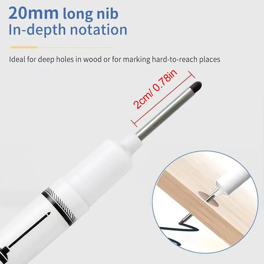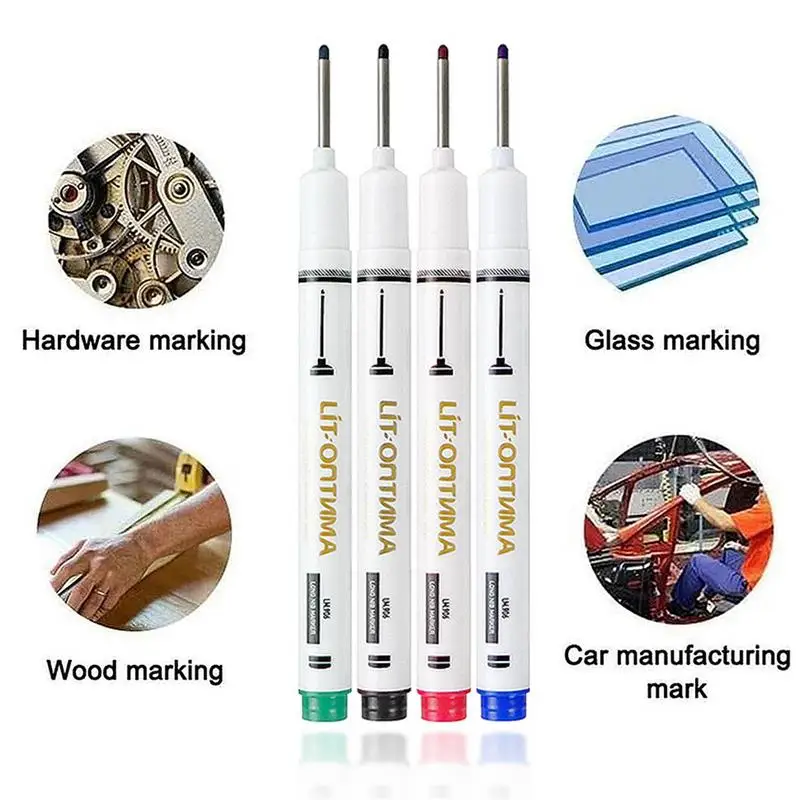 4. Tienen un amplio uso: estos marcadores de alcance profundo son perfectos para un uso extensivo, como marcar en madera, metal y vidrio, así como marcar la posición de la decoración de muebles. También se pueden utilizar en el procesamiento de agujeros profundos y la fabricación de automóviles para lograr un marcado de precisión.