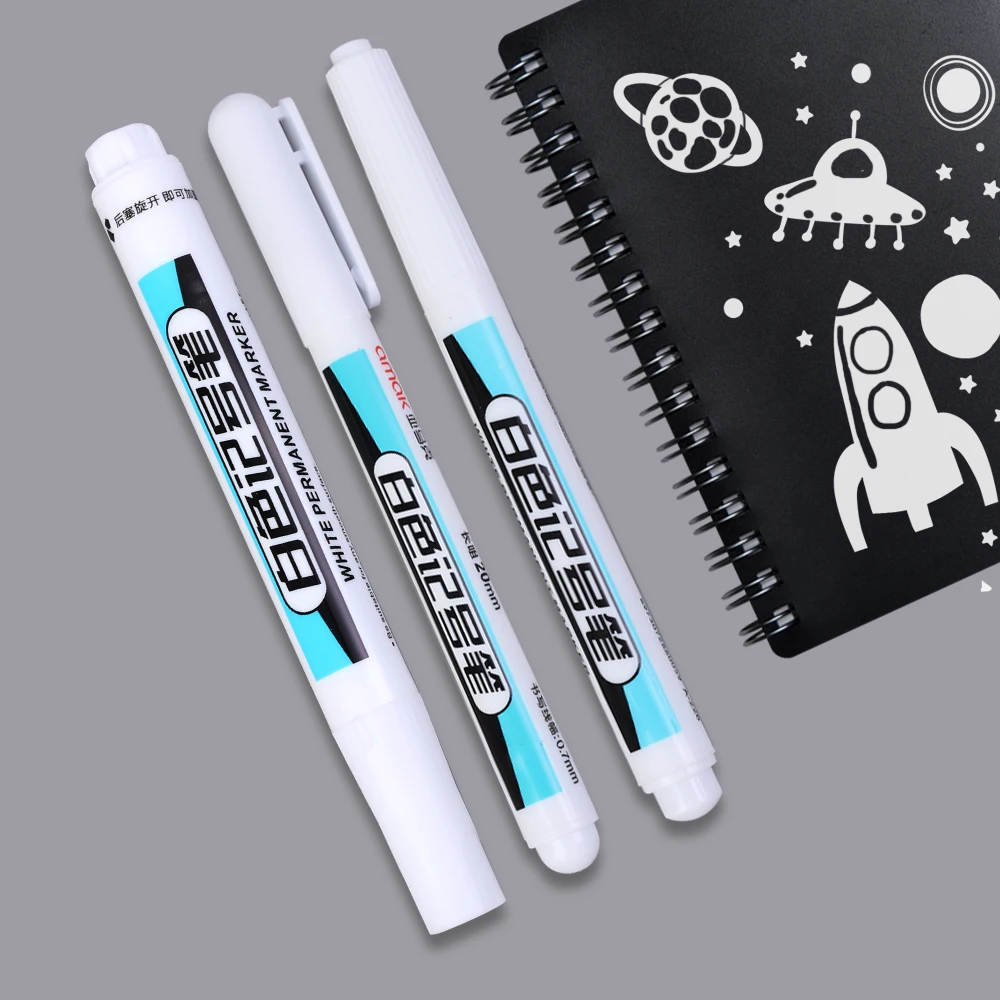 Comprar Rotuladores blancos de Gel a prueba de agua, bolígrafos de Graffiti DIY, marcadores de bocetos, papelería, escritura, suministros escolares, 1-5 piezas, 0,7/1,0/2,5mm
