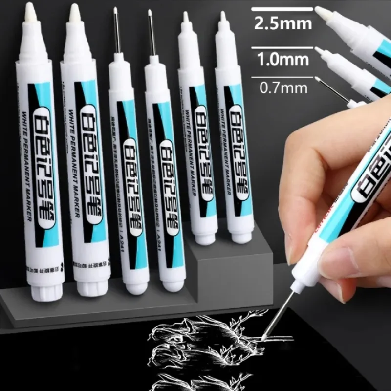 Comprar Rotuladores blancos de Gel a prueba de agua, bolígrafos de Graffiti DIY, marcadores de bocetos, papelería, escritura, suministros escolares, 1-5 piezas, 0,7/1,0/2,5mm