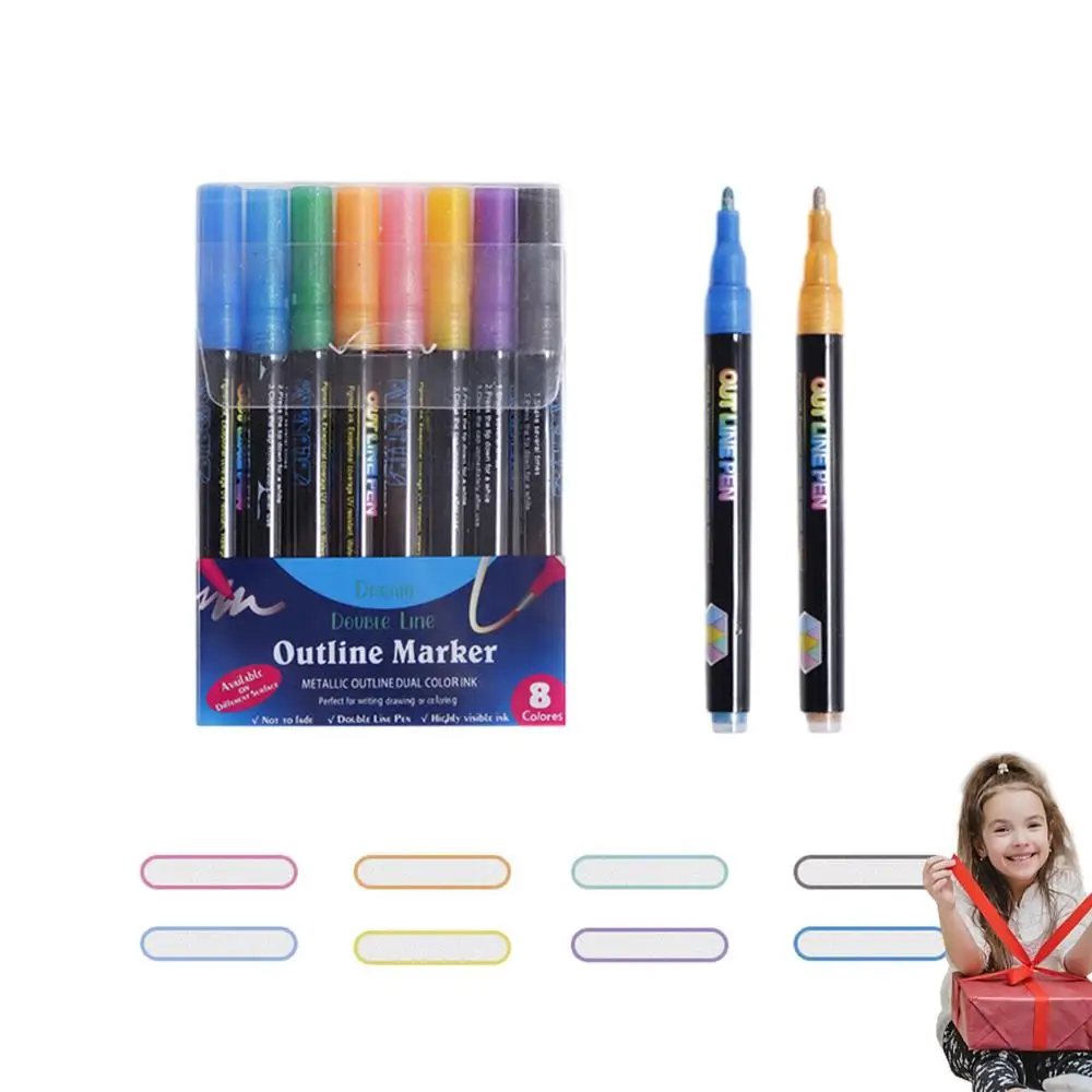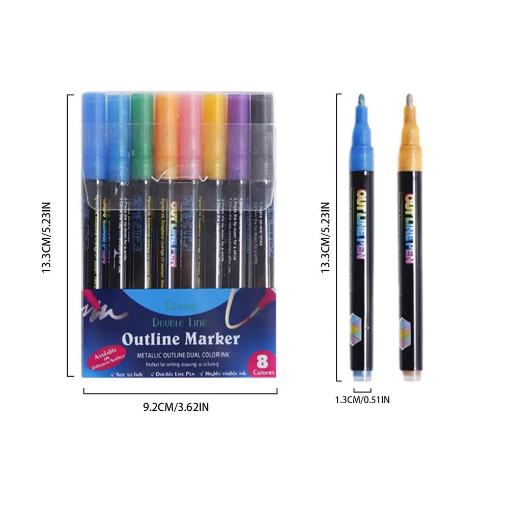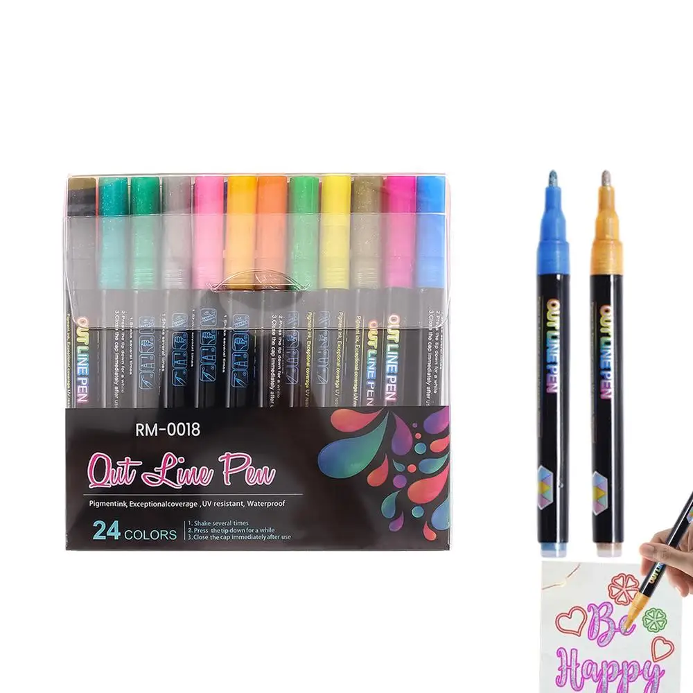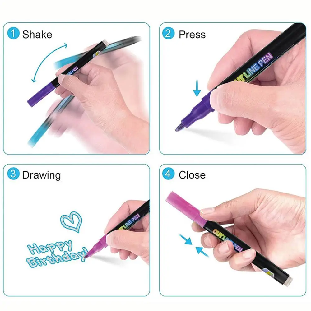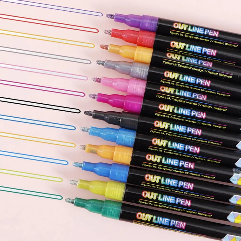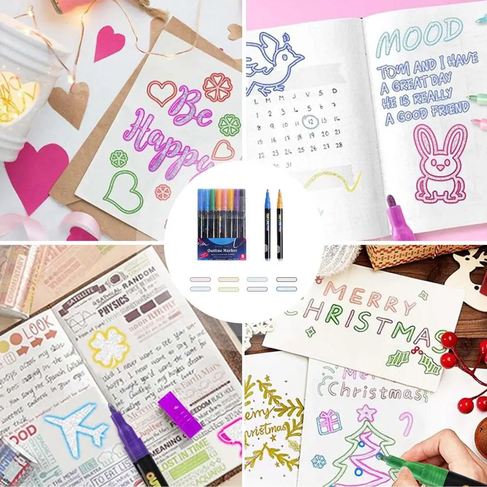 5. Ampliamente aplicado: Estos bolígrafos de doble línea de contorno tienen un diseño único de doble punta que le permite crear efectos impresionantes para manualidades DIY, pinturas, tarjetas de felicitación y más.