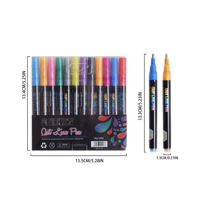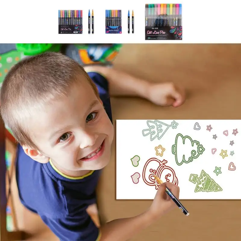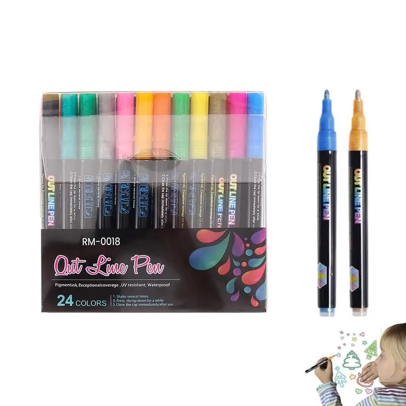 5. Ampliamente aplicado: Estos bolígrafos de doble línea de contorno tienen un diseño único de doble punta que le permite crear efectos impresionantes para manualidades DIY, pinturas, tarjetas de felicitación y más.