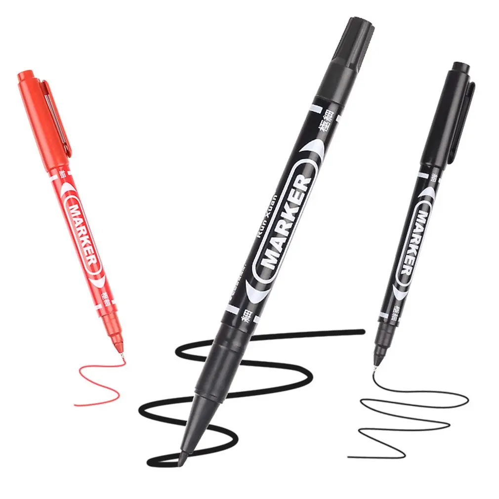 Comprar Rotuladores de doble punta para estudiantes, rotuladores de pintura artística de color permanente, color negro, azul y rojo, papelería escolar y de oficina, 1,5/1,0