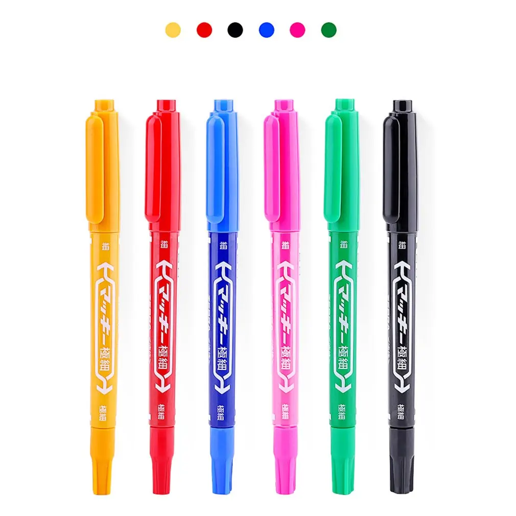 Comprar Rotuladores de doble punta para estudiantes, rotuladores de pintura artística de color permanente, color negro, azul y rojo, papelería escolar y de oficina, 1,5/1,0