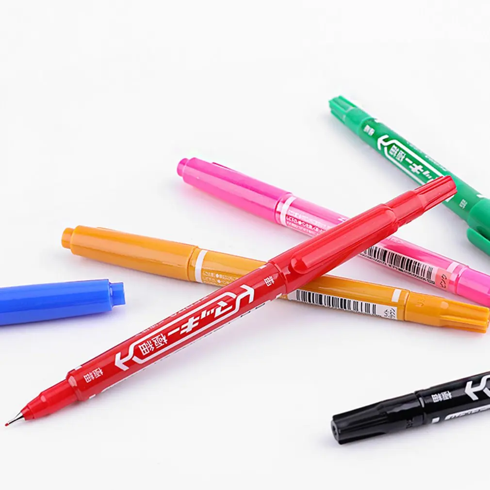 Comprar Rotuladores de doble punta para pintura artística, rotuladores de doble punta de color permanente, color negro, azul y rojo, papelería para estudiantes, escuela y oficina, 1,5/1,0