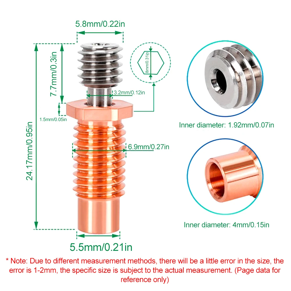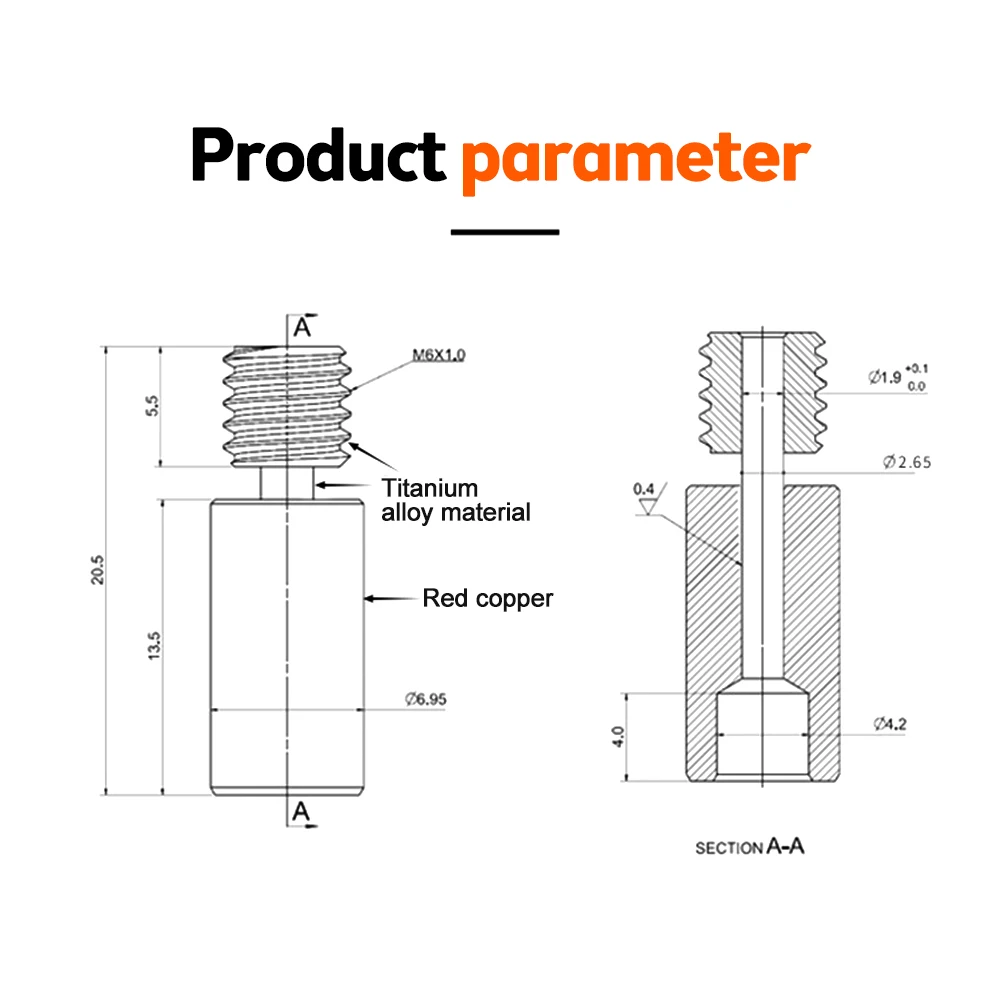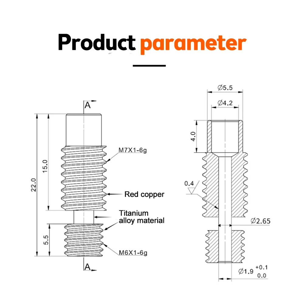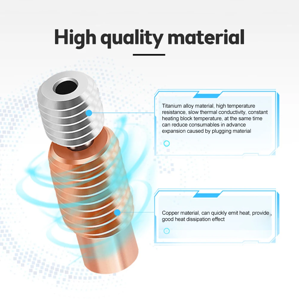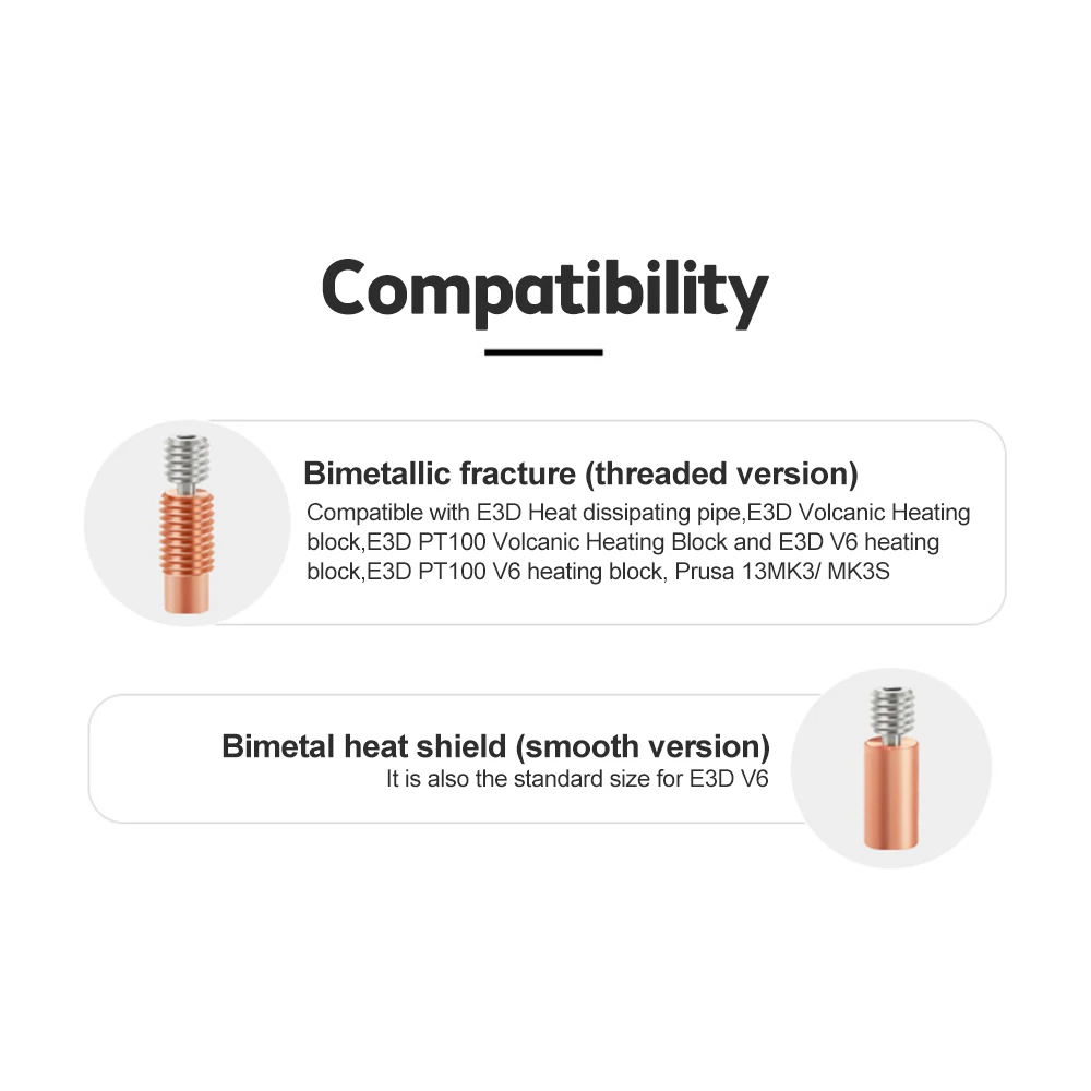Bimetal fracture (threaded version): compatible with E3D heat pipe, E3D volcanic heating block, E3D PT100 volcanic heating block, and E3D V6 heating block, E3D PT100 V6 heating block, Prusal3MK3/MK3S