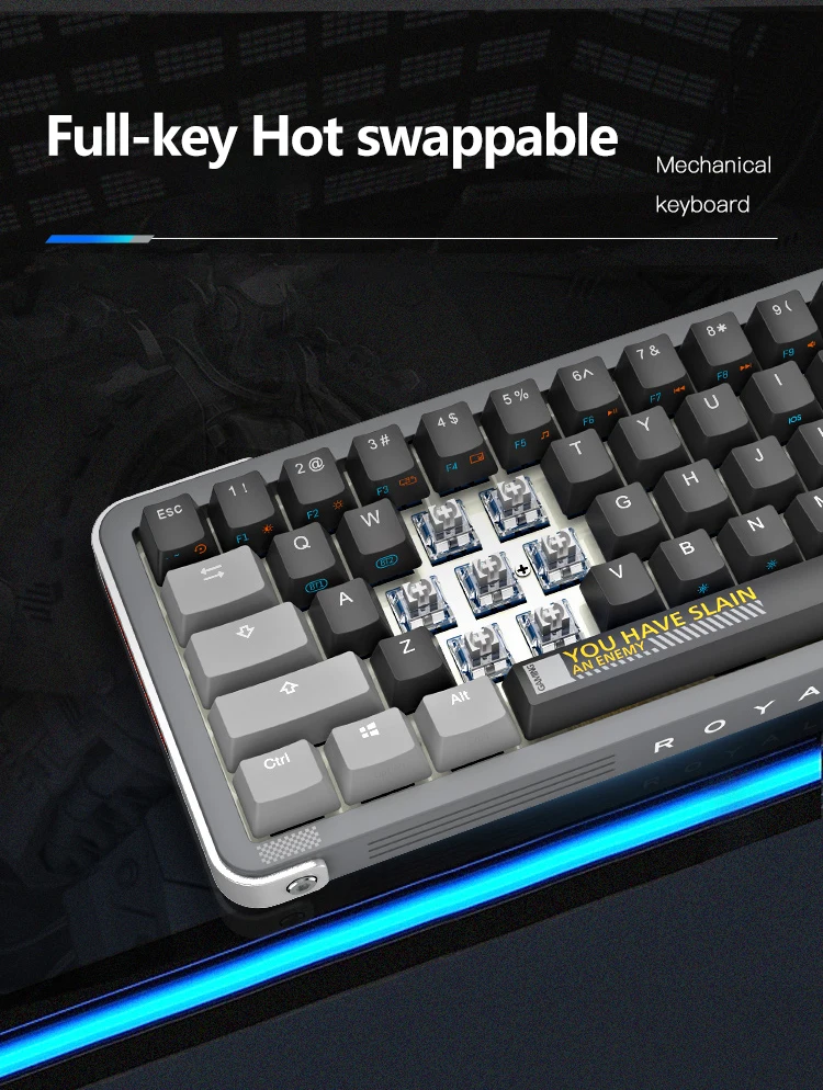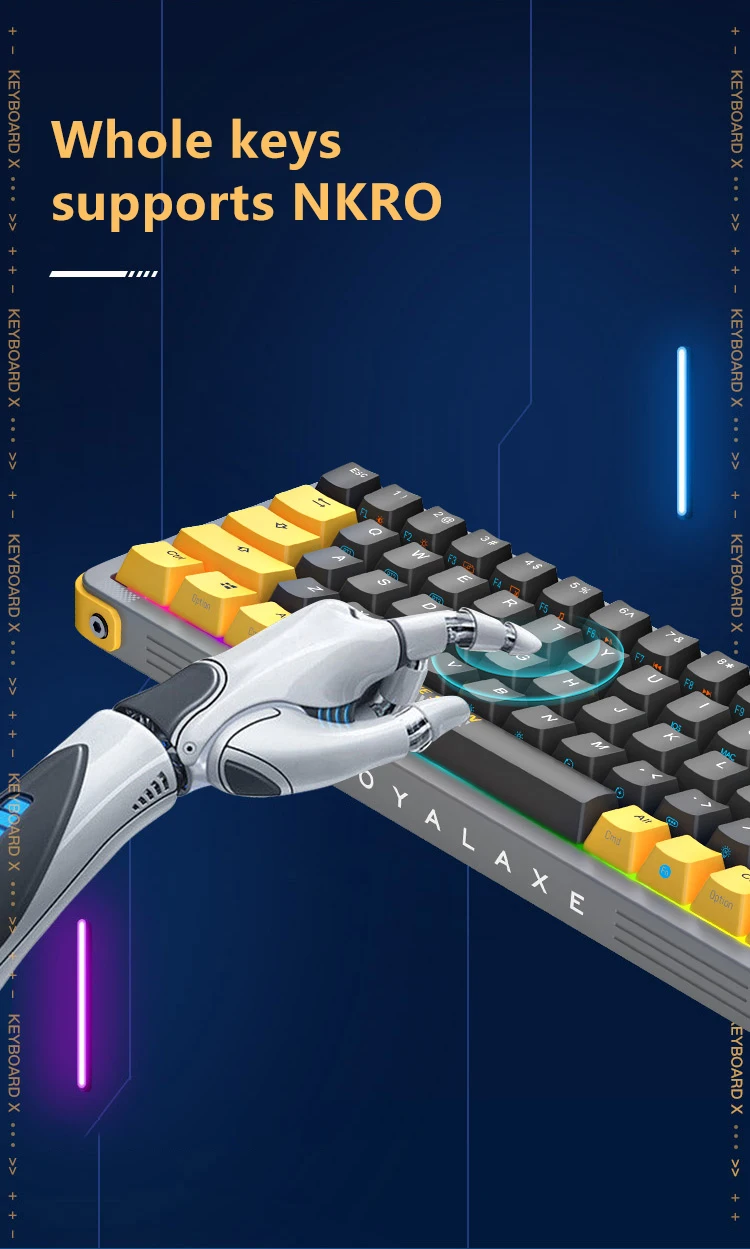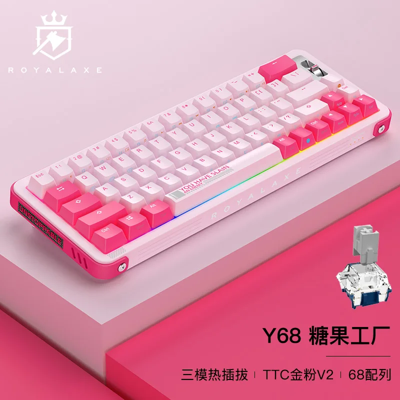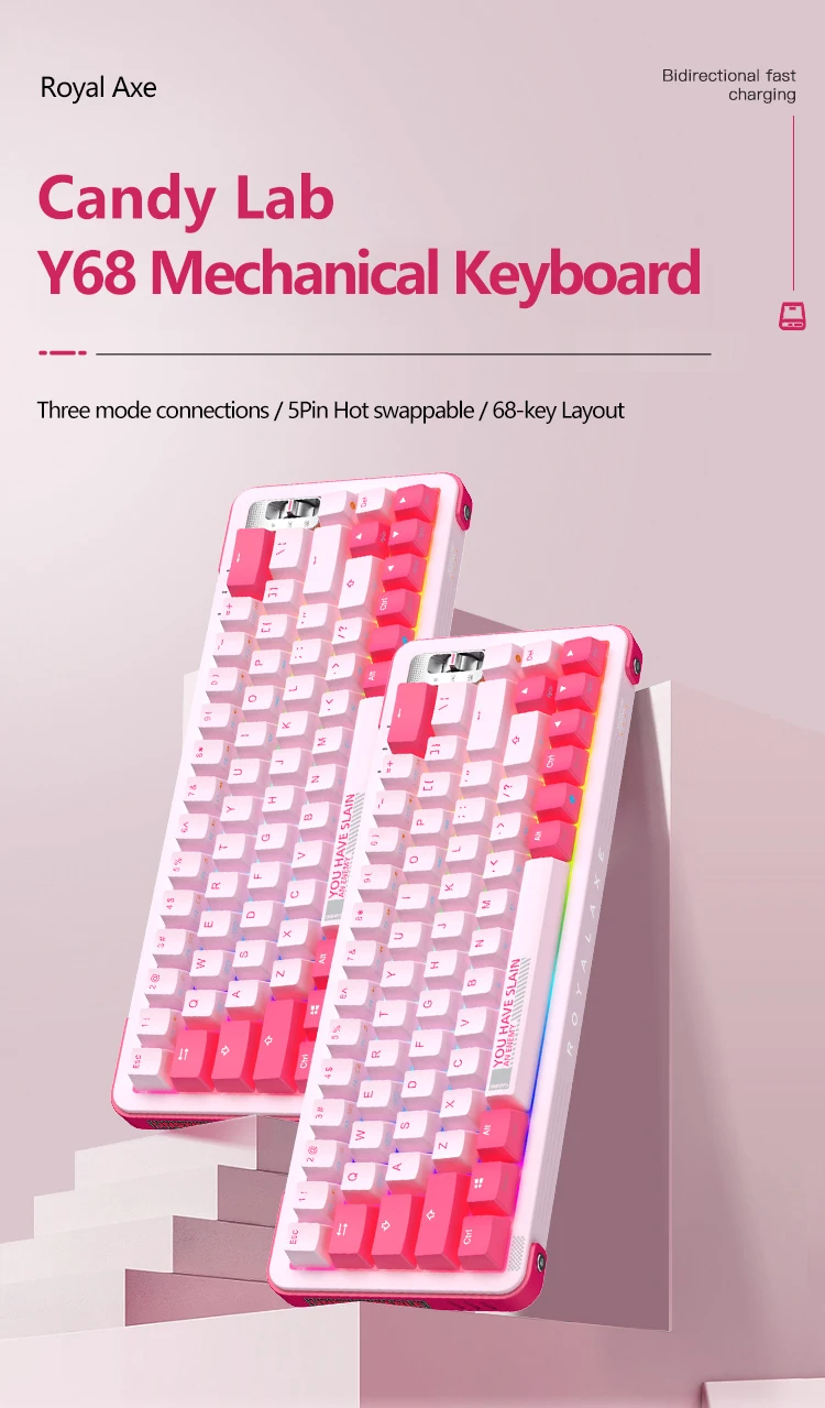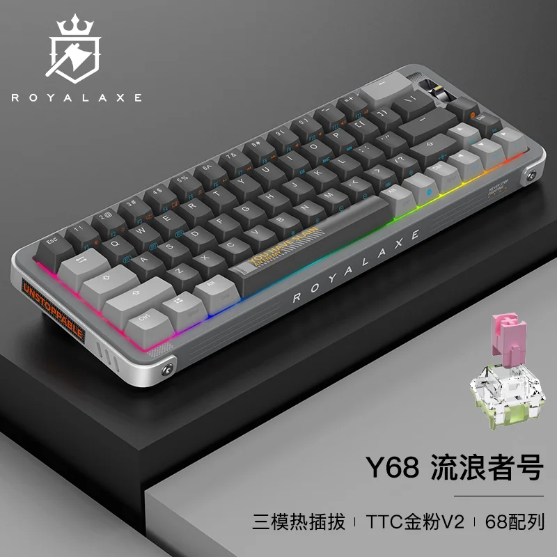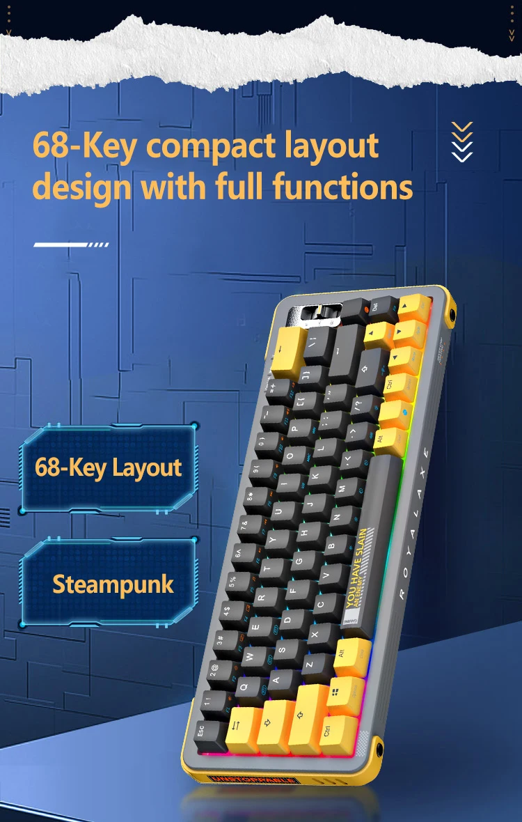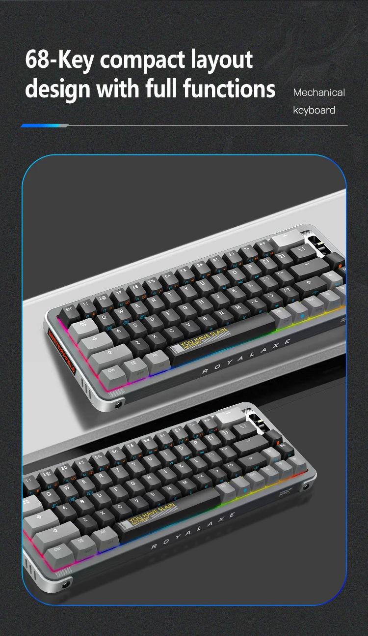 Comprar ROYAL AXE Y68 Teclado mecánico para juegos, interruptor de iluminación tipo c 2,4G BT, inalámbricos 3 modos intercambiables en caliente, PCB, RGB