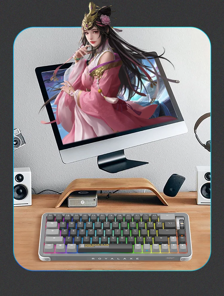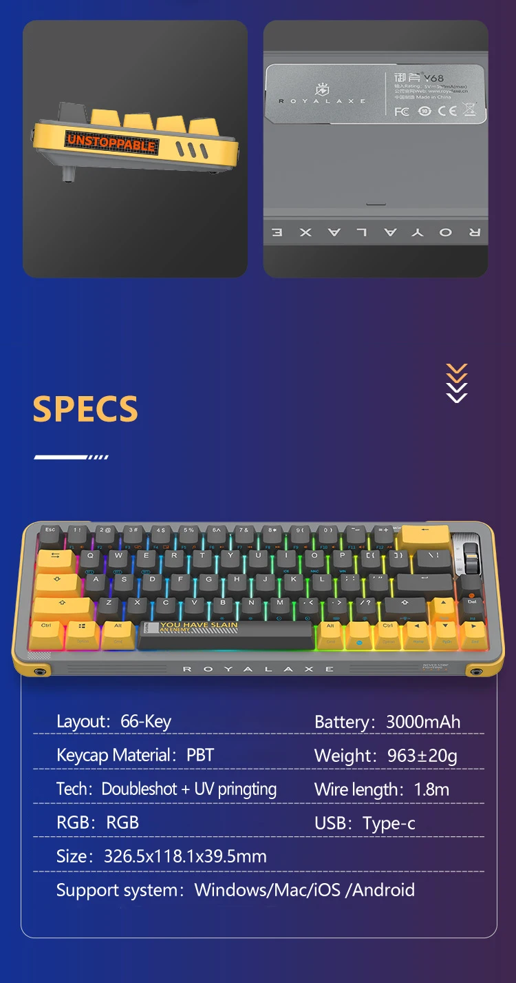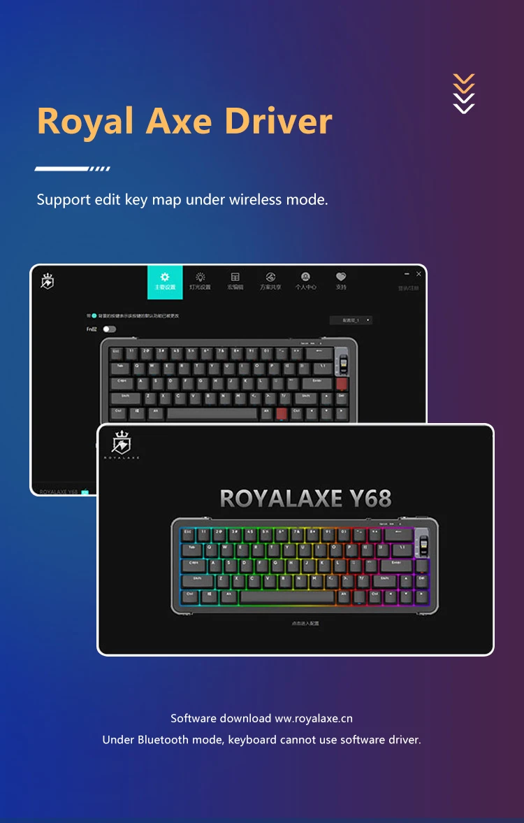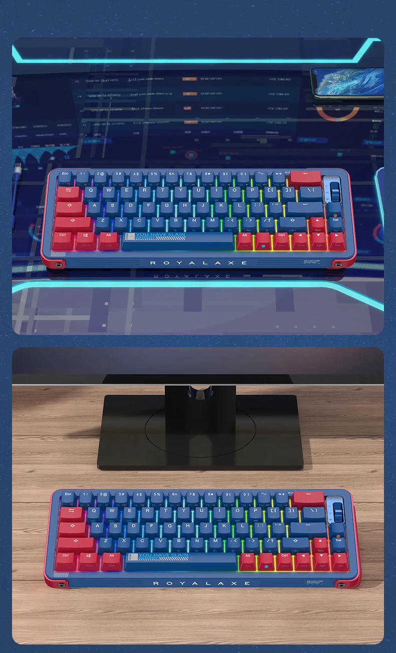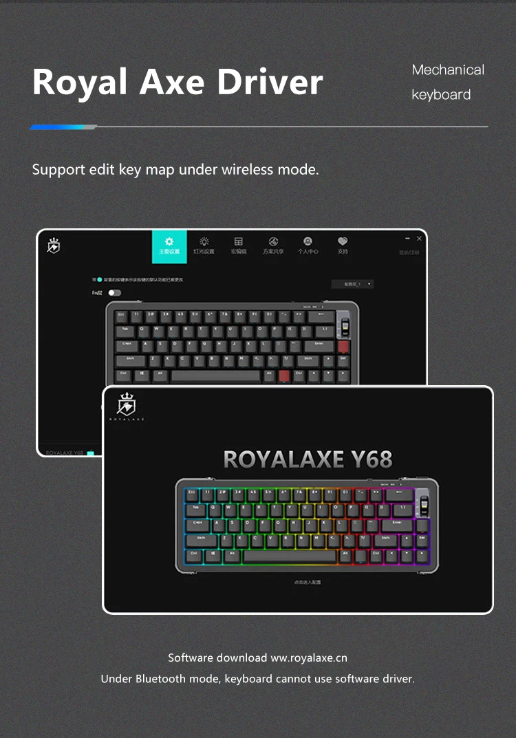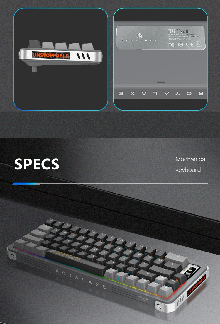 Comprar ROYAL AXE Y68 Teclado mecánico para juegos, interruptor de iluminación tipo c 2,4G BT, inalámbricos 3 modos intercambiables en caliente, PCB, RGB