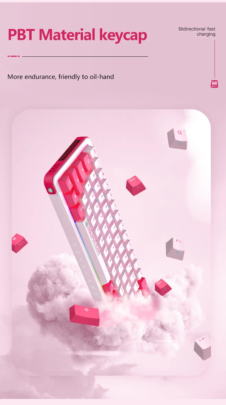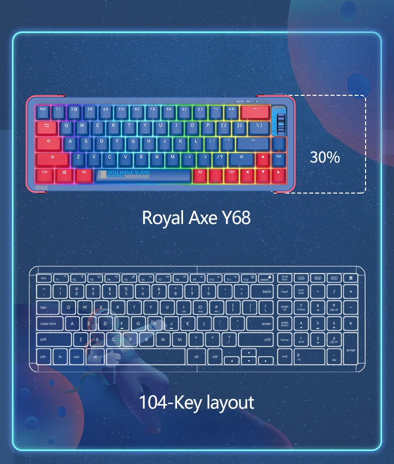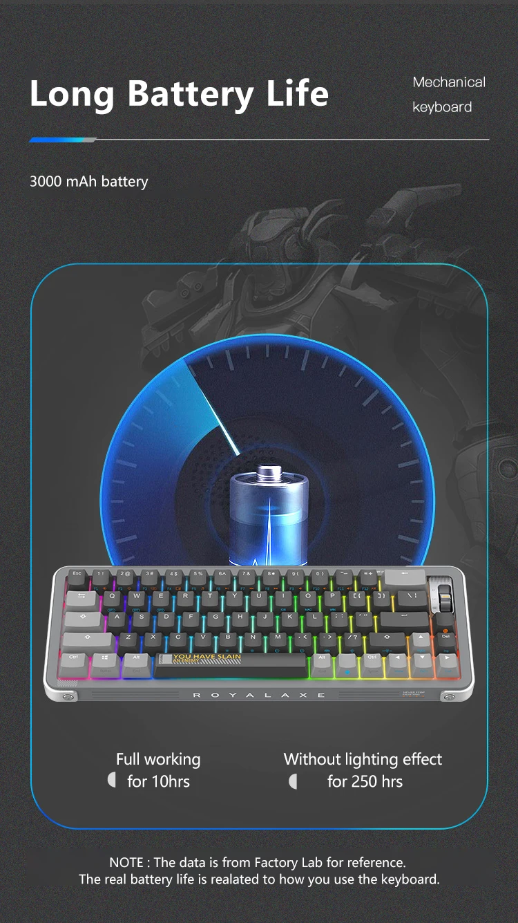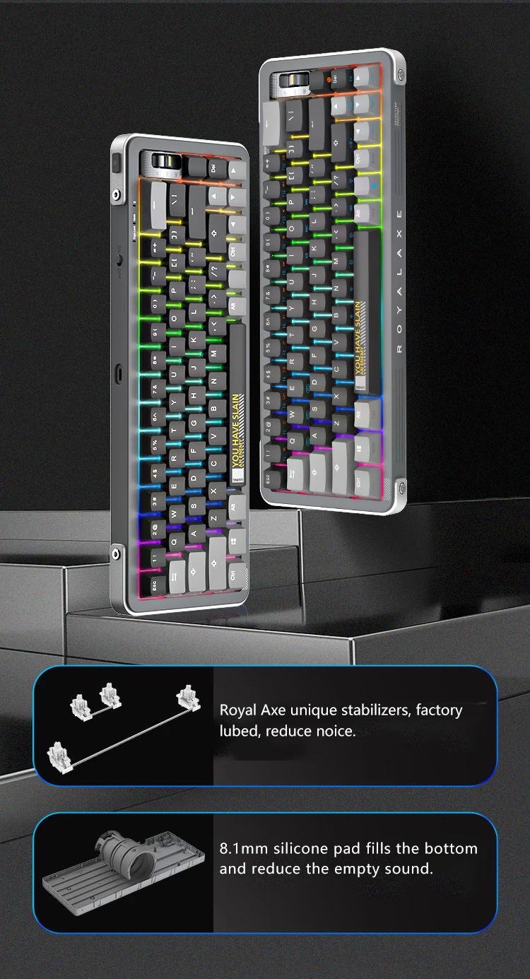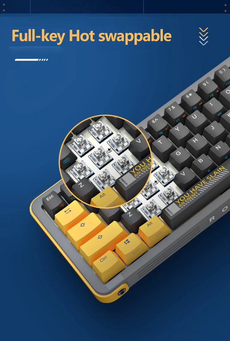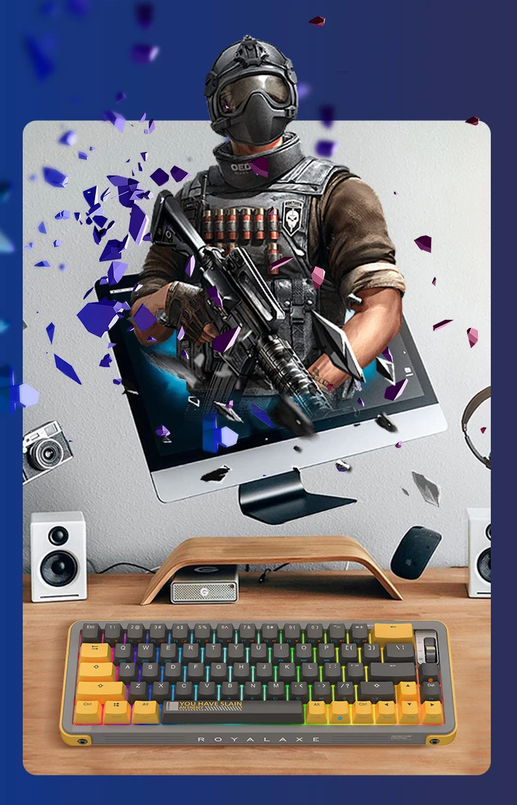 Comprar ROYAL AXE Y68 Teclado mecánico para juegos, interruptor de iluminación tipo c 2,4G BT, inalámbricos 3 modos intercambiables en caliente, PCB, RGB