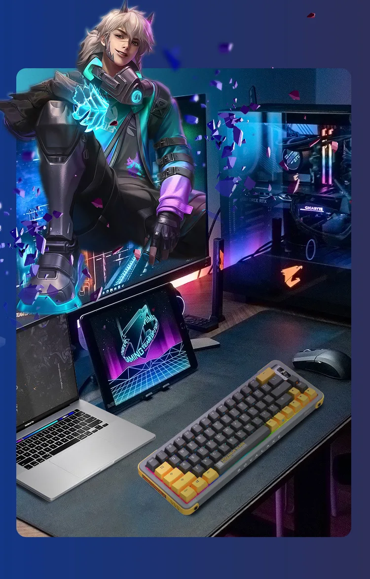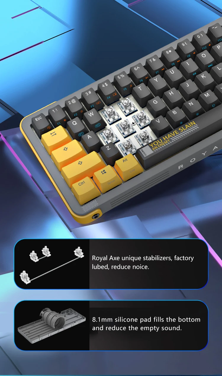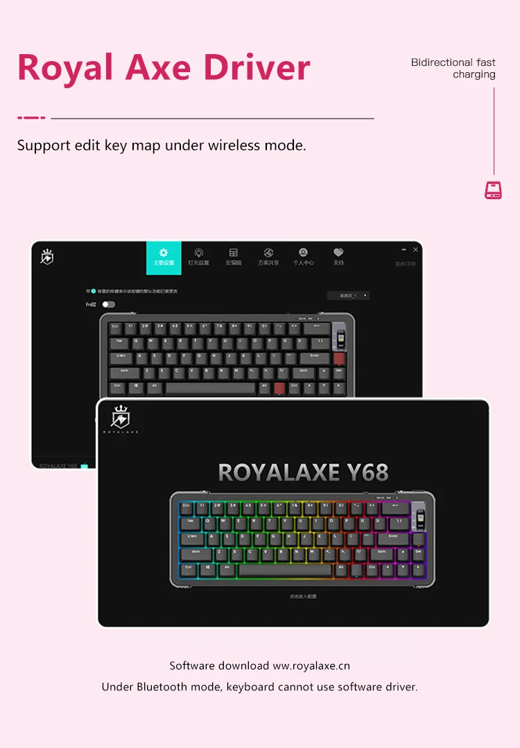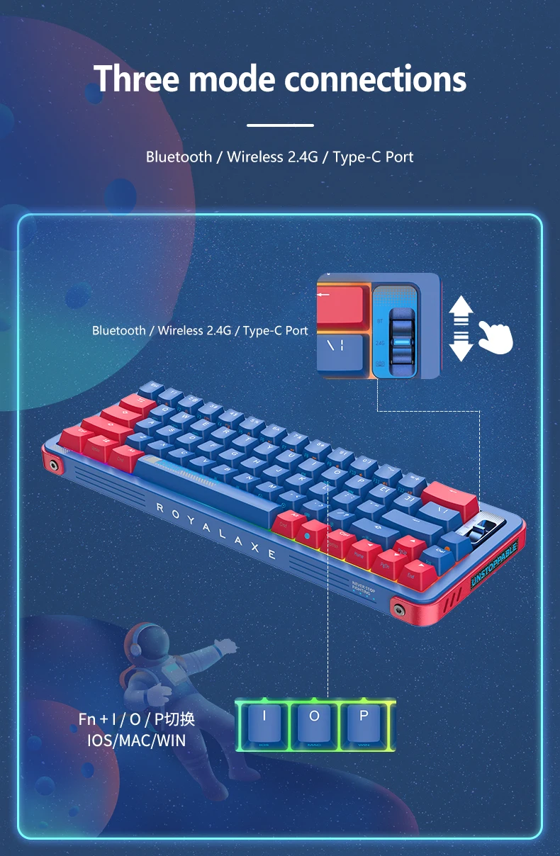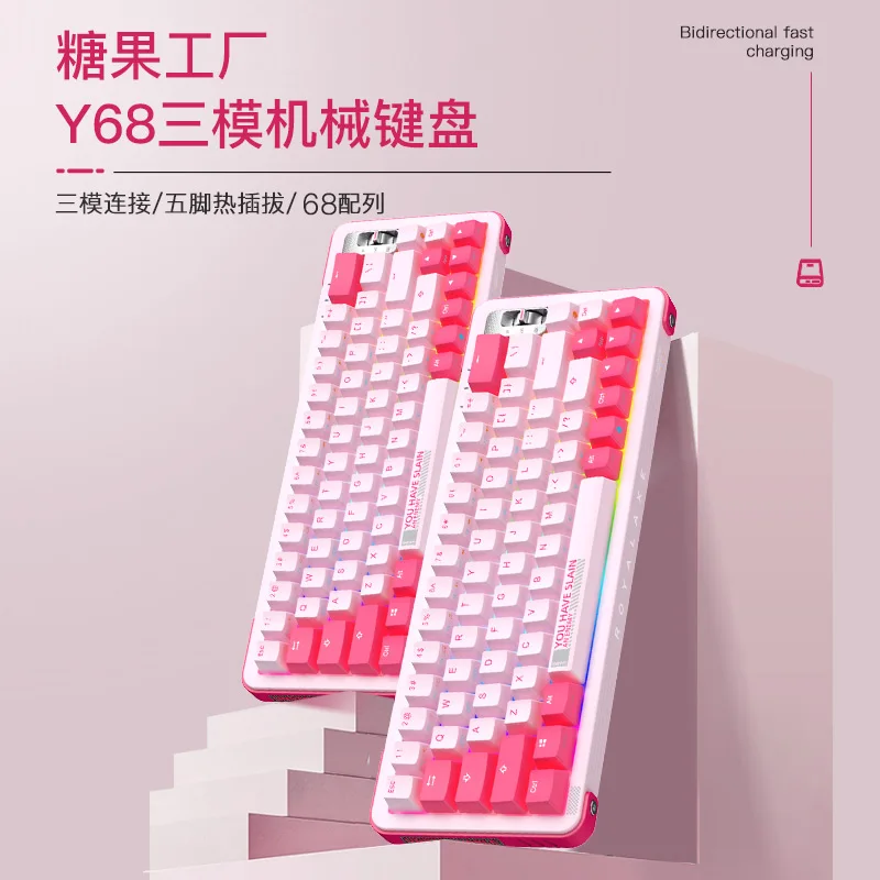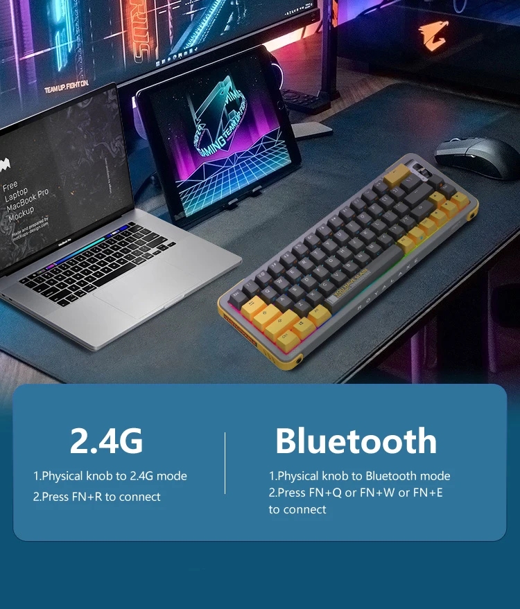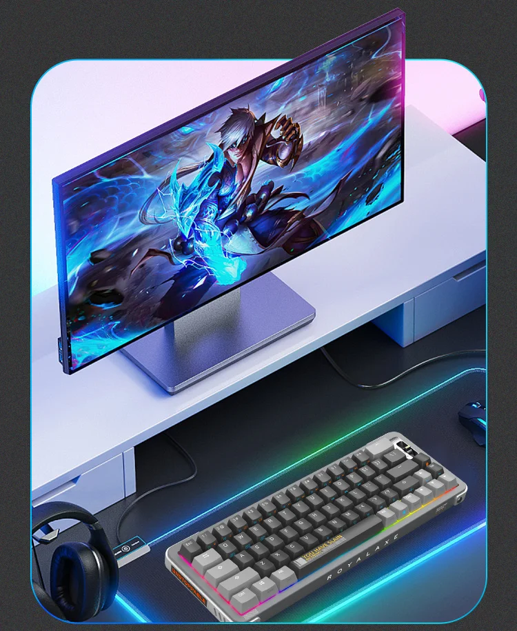 Comprar ROYAL AXE Y68 Teclado mecánico para juegos, interruptor de iluminación tipo c 2,4G BT, inalámbricos 3 modos intercambiables en caliente, PCB, RGB
