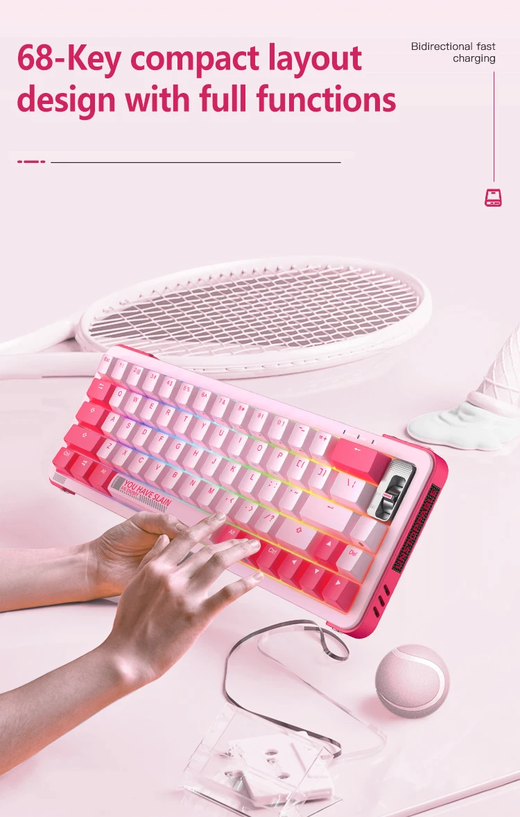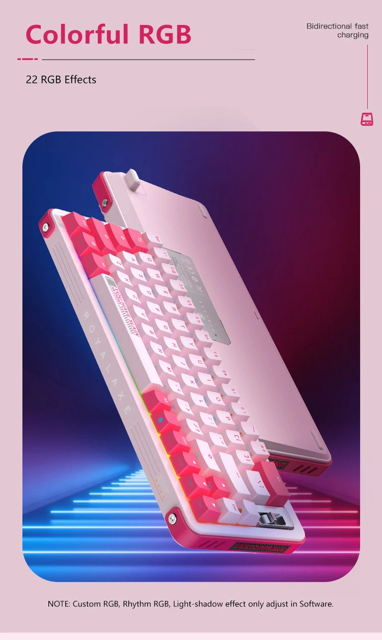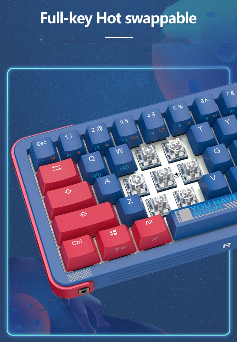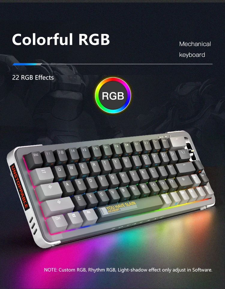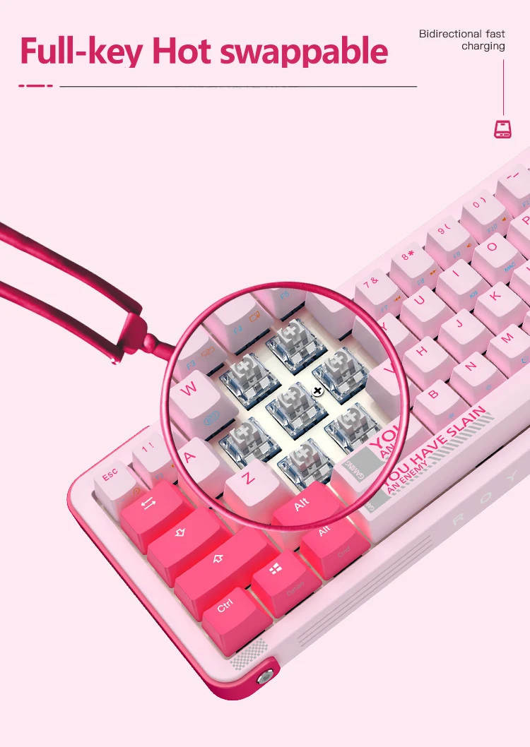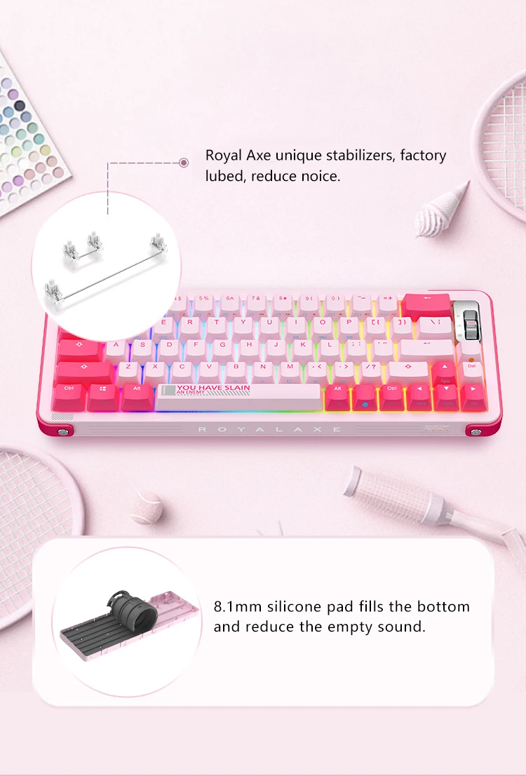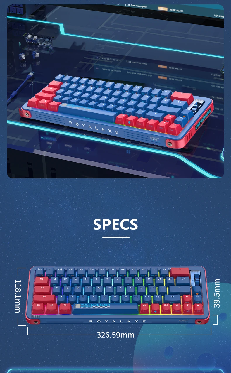 Comprar ROYAL AXE Y68 Teclado mecánico para juegos, interruptor de iluminación tipo c 2,4G BT, inalámbricos 3 modos intercambiables en caliente, PCB, RGB