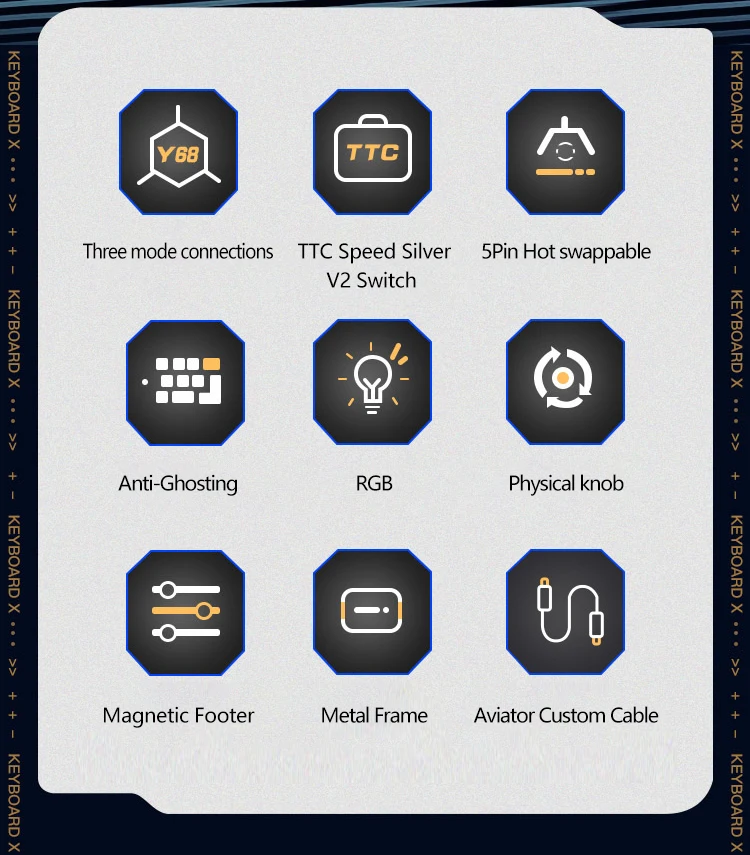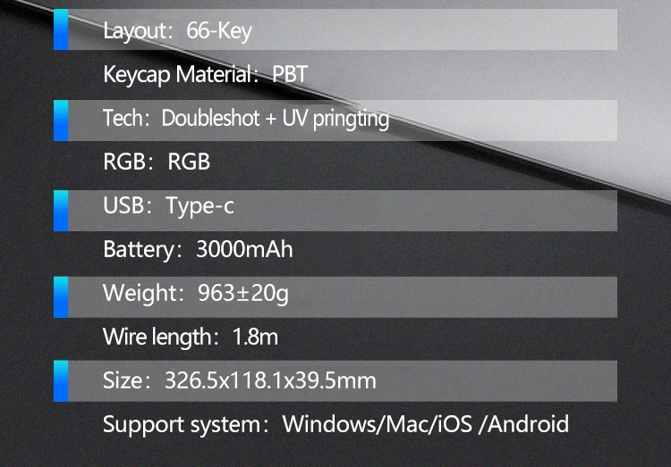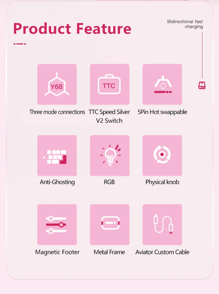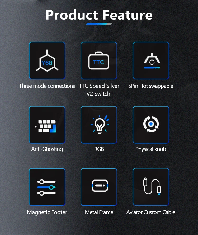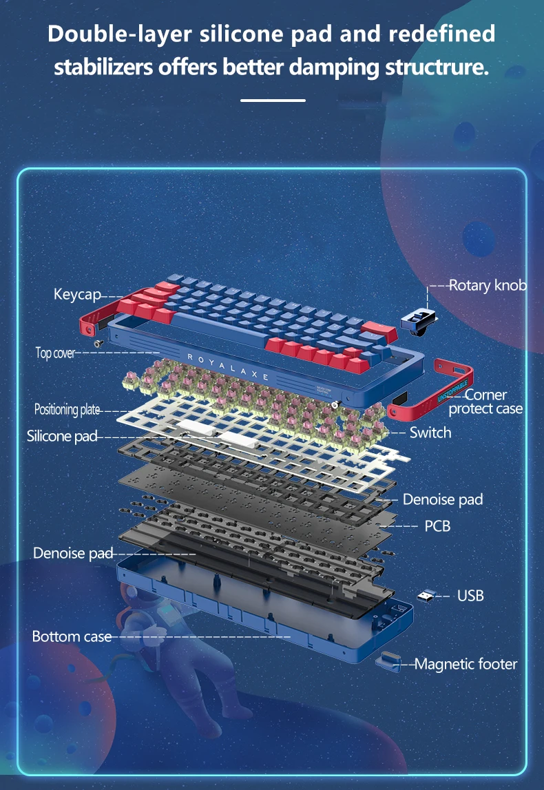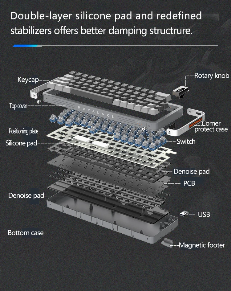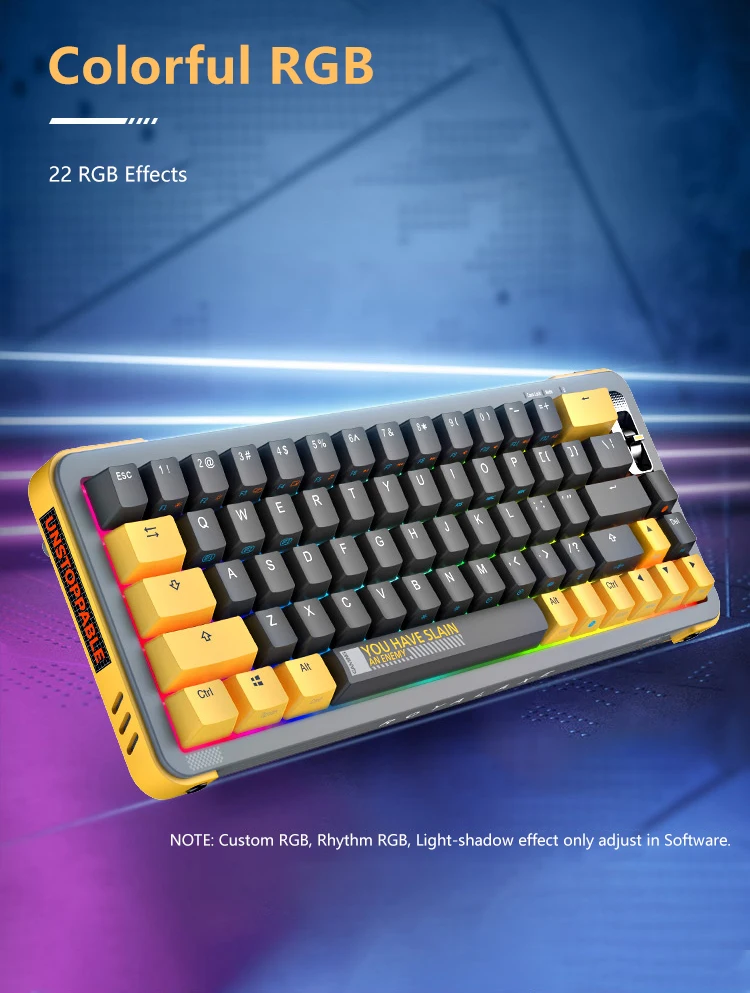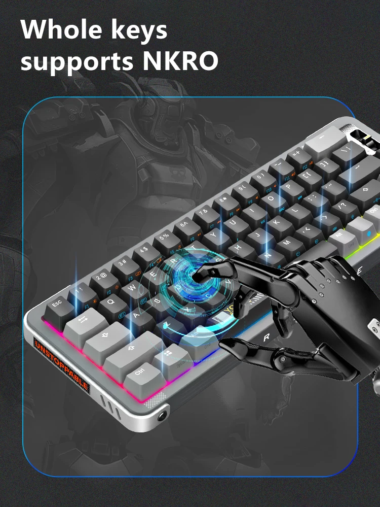 Comprar ROYAL AXE Y68 Teclado mecánico para juegos, interruptor de iluminación tipo c 2,4G BT, inalámbricos 3 modos intercambiables en caliente, PCB, RGB