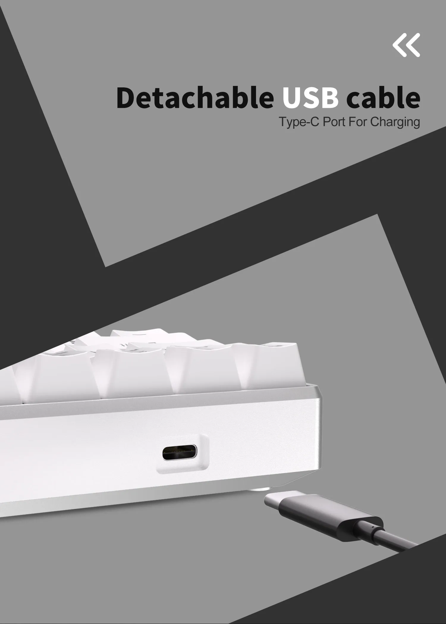 1.Mini teclado de 60% 61 teclas- El mini teclado para juegos RK61 60% es un diseño ultracompacto con 61 teclas que lo convierte en un escritorio ordenado con sus equipos organizados puestos, incluso las personas no tienen nada que ver con Minimalista se sumergirá en su pequeño diseño práctico.Consejos que quizás quieras saber es que el teclado sin números es la elección de la mayoría de los jugadores de FPS, más espacios restantes para los movimientos del mouse.