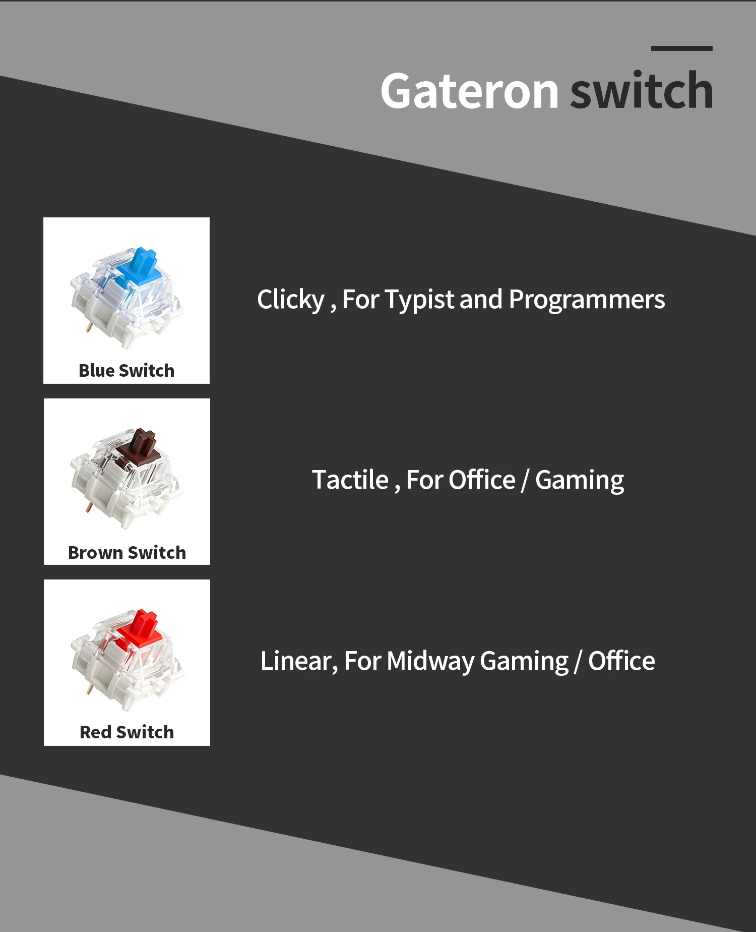 3.Hot-swappable - Hot-swap PCB allows you to replace 3 pins/5 pins switches freely without soldering issue. Enjoy the fun of making your own unique keyboard.