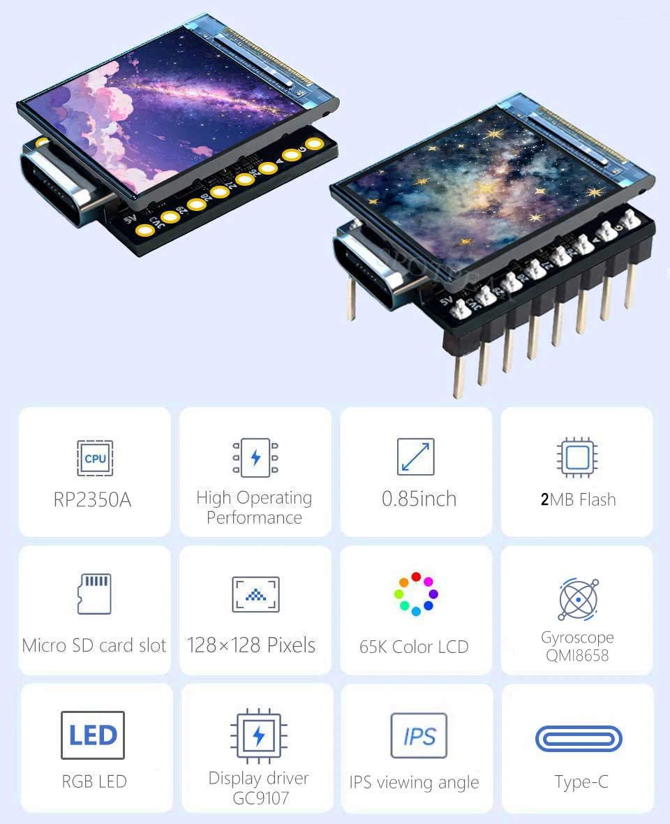 Pantalla LCD integrada de 0,85 pulgadas, resolución de 128 × 128, 65 colores