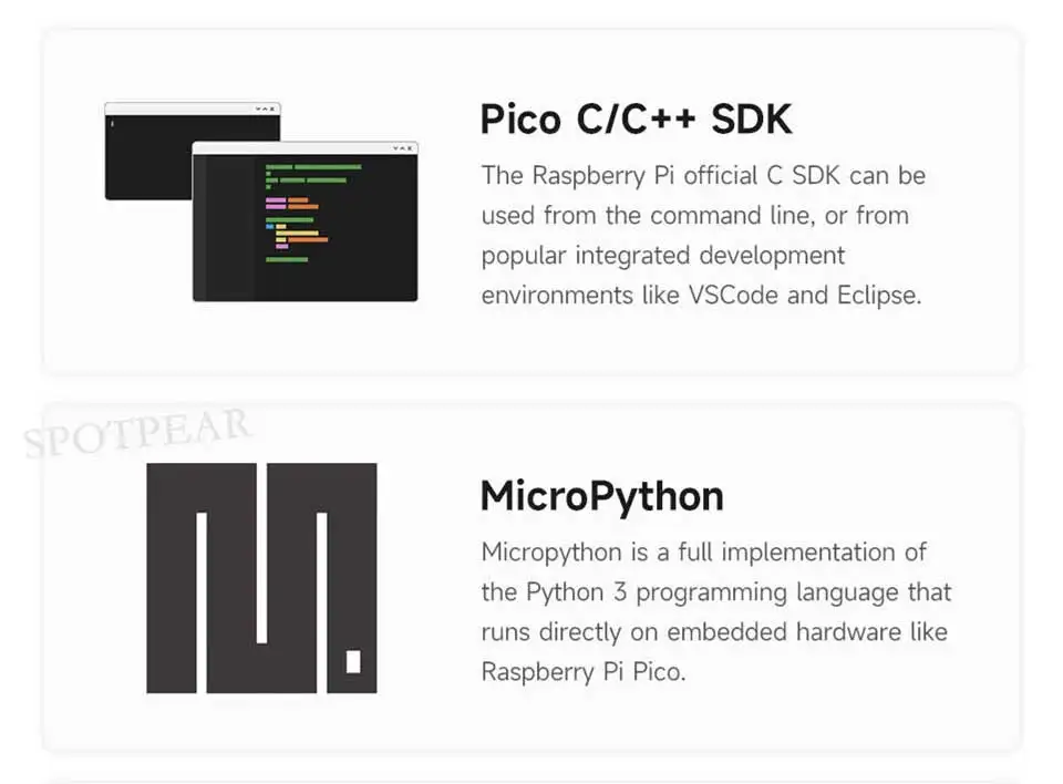 Soporta C/C++, MicroPython