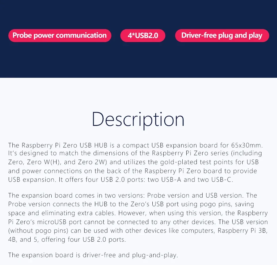 RPi0_USB HUB, placa de expansión Raspberry Pi zero_USB HUB, plug and play sin controlador