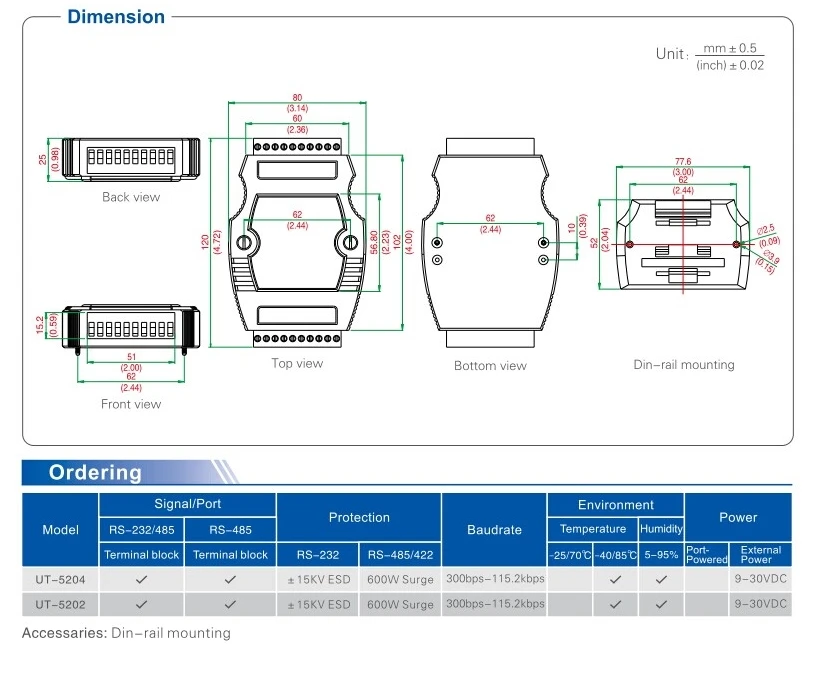 ● RS-485 proporciona rayos de 600 W y protección contra sobretensiones en cada línea