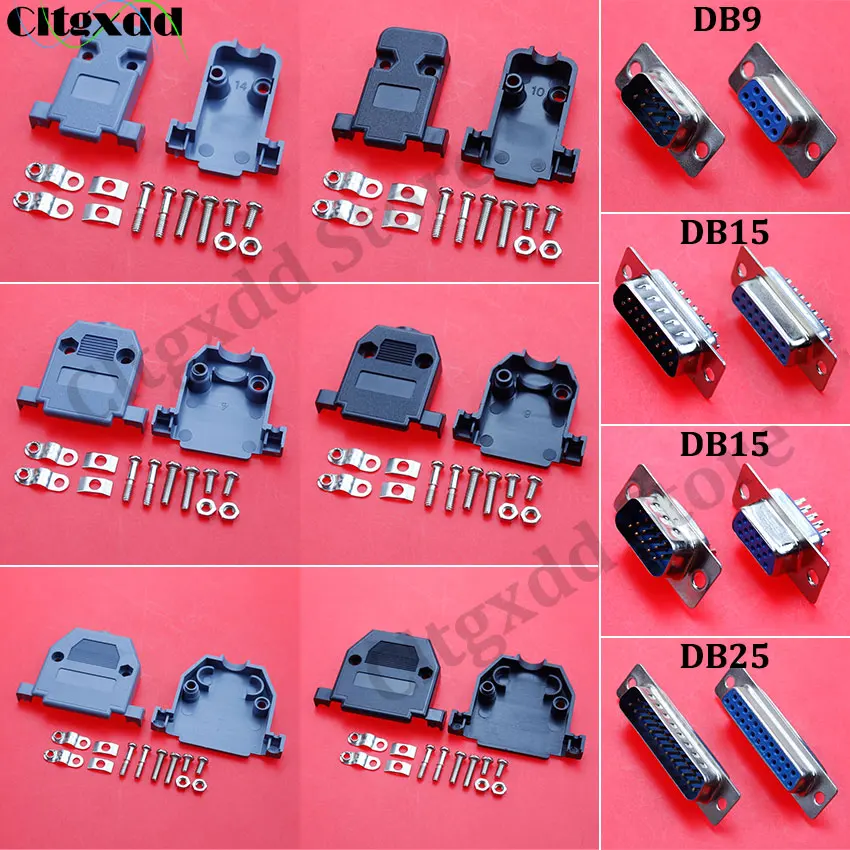 Comprar RS232 DB9 DB15 DB25 9/15/25 pines hembra macho 2/3 filas tipo soldadura enchufe D-SUB conector de enchufe cubierta de carcasa de montaje de plástico