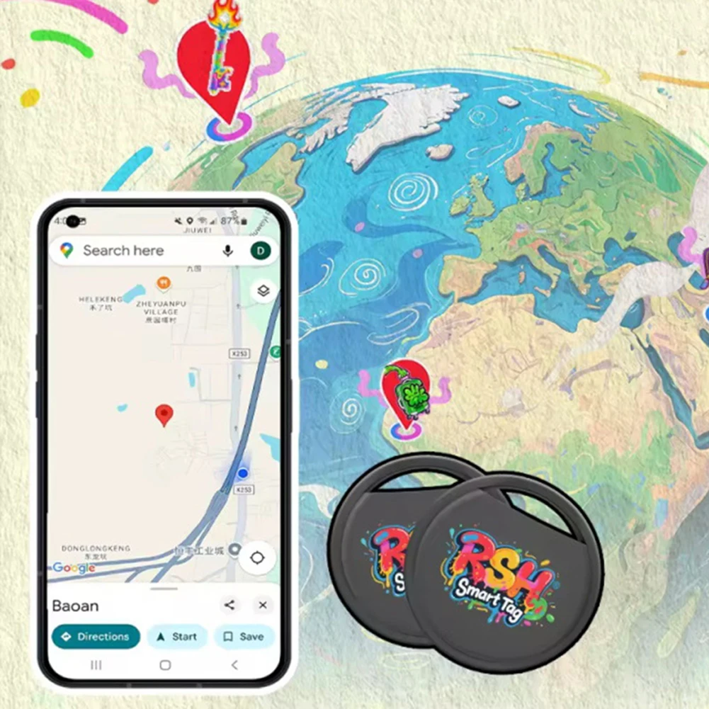 Comprar RSH-rastreador GPS de moda, localizador Android con pintura divertida, dispositivos de seguimiento antipérdida que funcionan con el posicionamiento Global Hub Find de Google