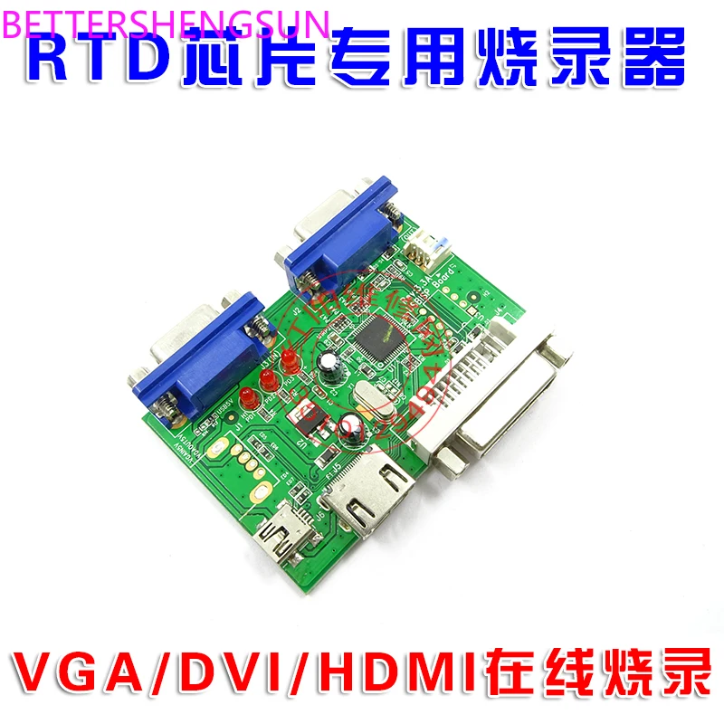 La herramienta de grabación USB entrega un cable USB. Se proporciona un cable VGA/DVI/HDMI. Herramienta de grabación especial de placa de la serie RTD, quemador de placa de controlador LCD especial de chip de la serie RTD, compatible con grabación en línea VGA DVI HDMI, compatible con Rowa dingke Langlang Hongxing y otra quema de placa de controlador de la serie RTD