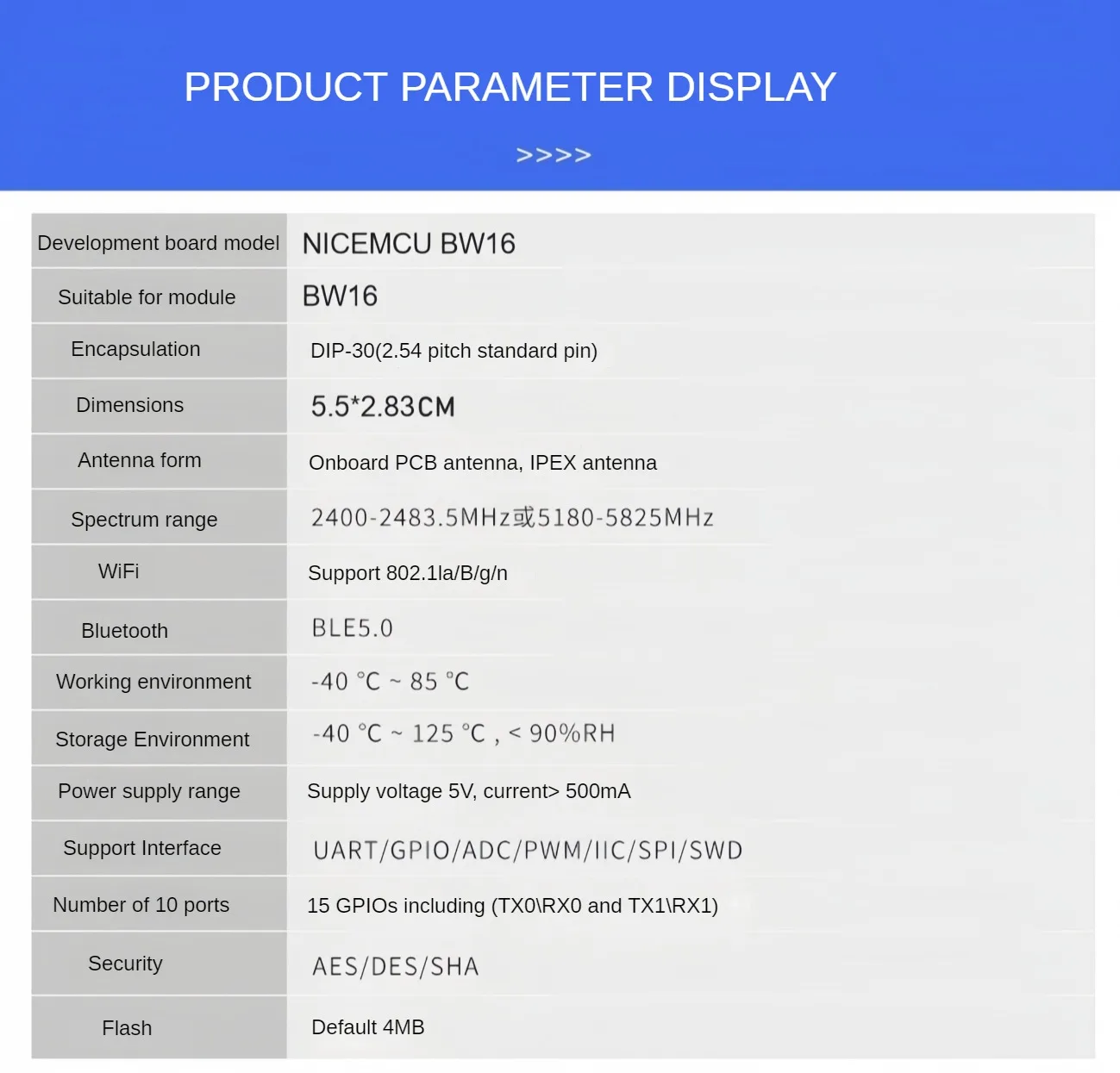 La placa de desarrollo NICEMCU BW16 es una placa de desarrollo central diseñada para el módulo BW16, la placa de desarrollo continúa el diseño clásico de la placa de desarrollo NodeMCU, lo que lleva a todo 1/O a la fila de pines en ambos lados, luces RGB de siete colores integradas. Los desarrolladores también pueden conectar periféricos según sus propias necesidades. BW16 es un módulo SoC Bluetooth Wi-Fi+ de doble banda basado en el chip RTL8720DN. Admite doble banda (2. 4GHz o 5GHz)WLAN y Bluetooth de baja energía 5. 0; Integra ARM V8 (compatible con Cortex-M4F) MCUS de alto rendimiento, ARM V8M (compatible con Cortex-MO) MCUS de baja potencia, WLAN (802. 11a/b/g/n), MAC, banda base Bluetooth y banda base RF, y también proporciona un conjunto de puertos GPIO configurables. Para el control de diferentes dispositivos periféricos.