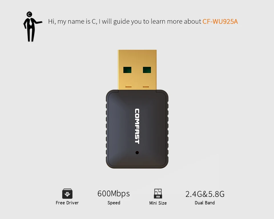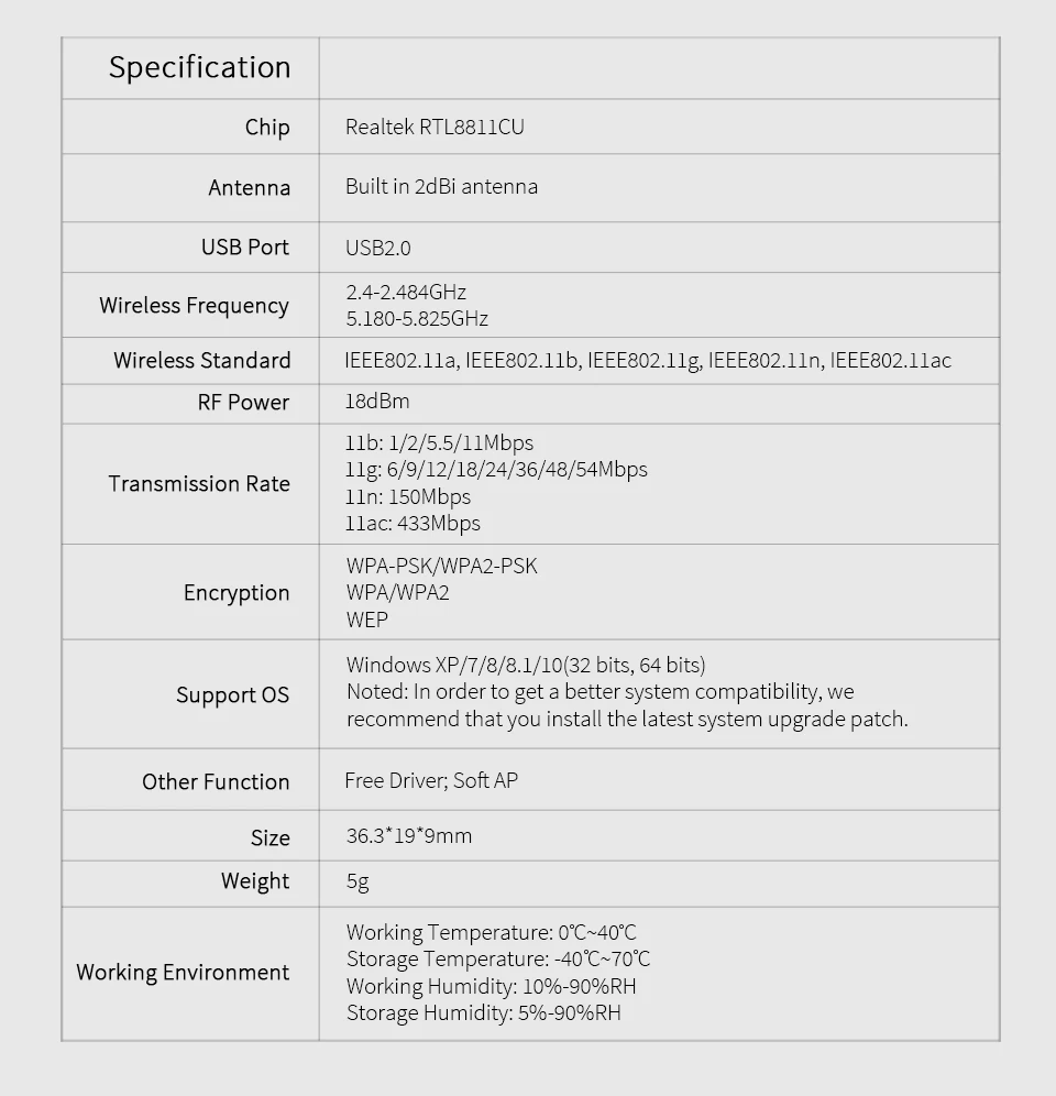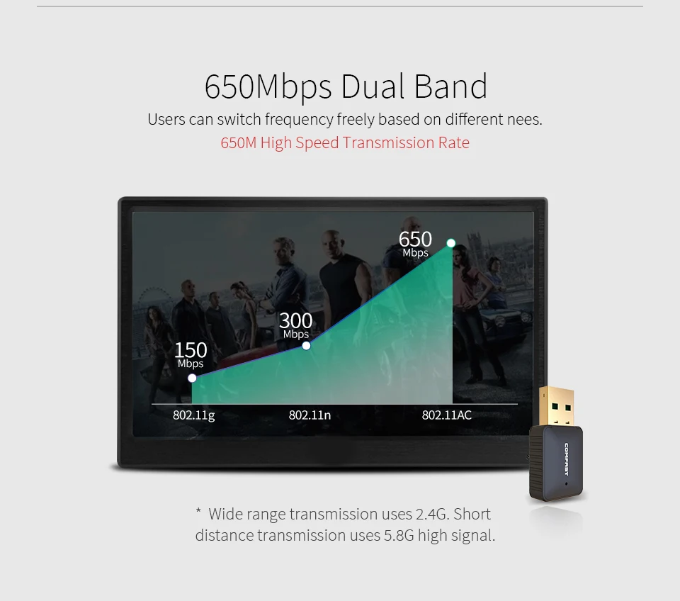 Comprar RTL8811CU-tarjeta de red de unidad libre de 650Mbps, adaptador USB 2,0, banda Dual, 2,4G y 5,8G, WiFi, dongle, PC, Mini receptor de ordenador inalámbrico