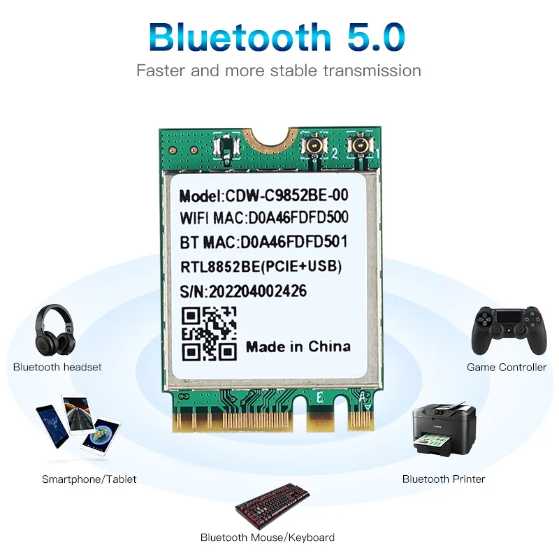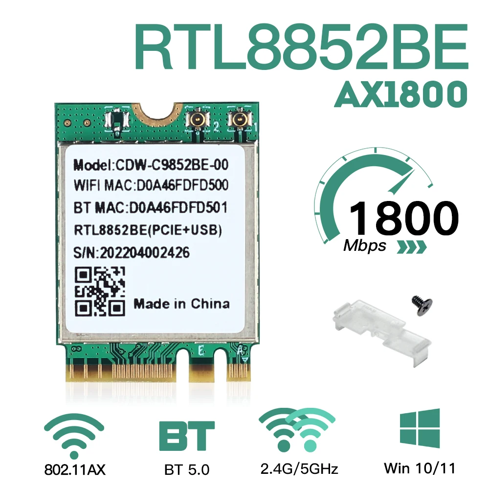 Comprar RTL8852BE AX1800, tarjeta de red NGFF M.2, 2,4G/5G, banda Dual, WiFi inalámbrico, 6 tarjetas, 802.11AX, BT 5,0, para ordenador portátil/PC, compatible con Windows 10/11