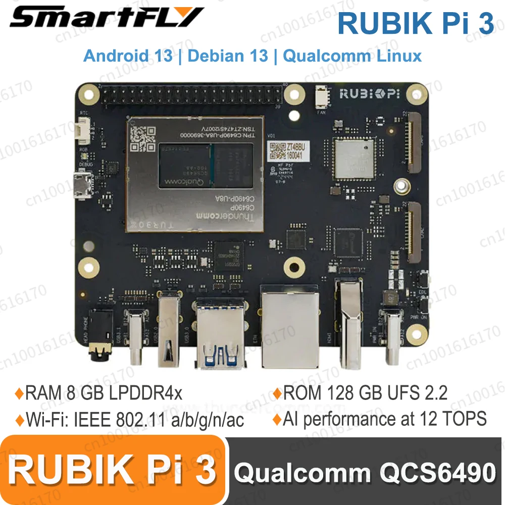 RUBIK Pi 3 admite múltiples sistemas operativos como Android / Linux / LU, con SDK de Thundercomm para brindar a los desarrolladores una mejor experiencia.Con excelente rendimiento de IA en 12 TOPS, Qualcomm Dragonwing™ QCS6490 se puede emparejar con Qualcomm AI Hub para permitir a los desarrolladores experimentar personalmente el impacto de la evolución de la IA.