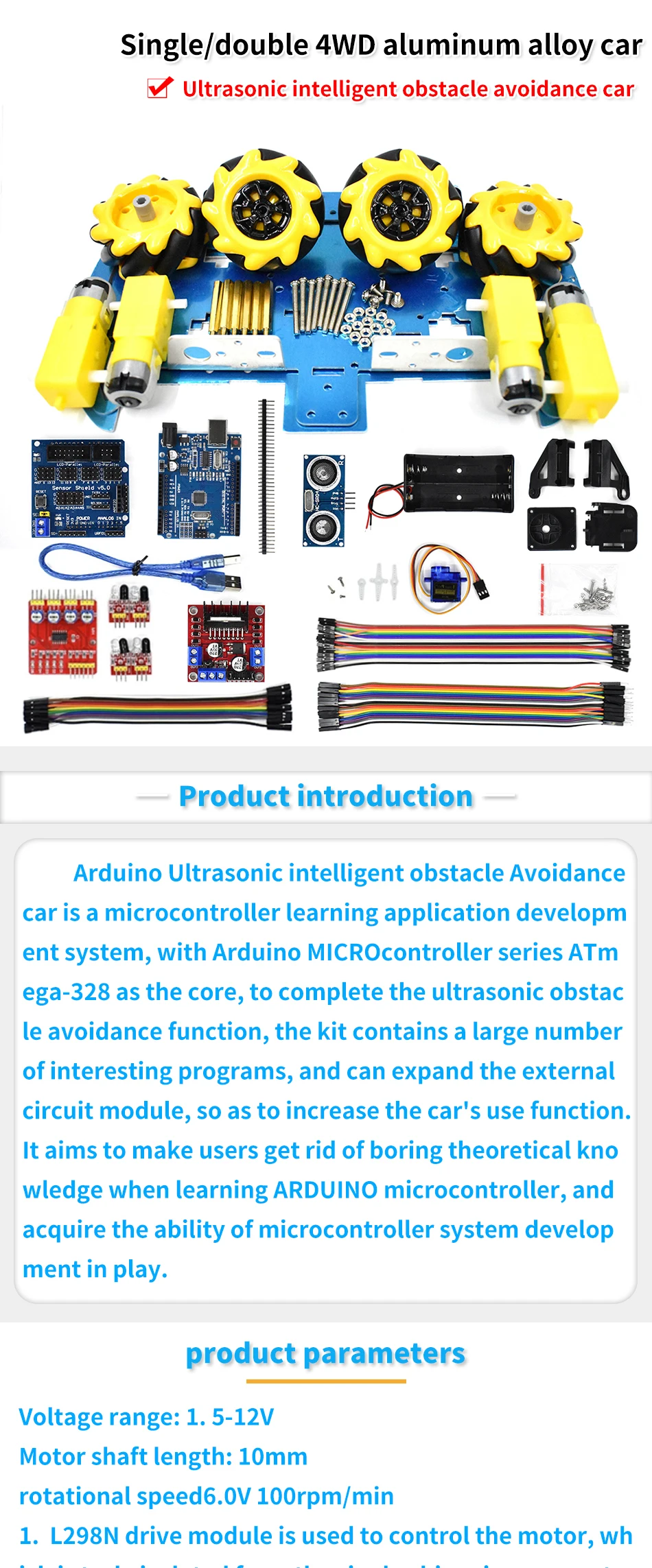 Rueda McNamum, chasis de aluminio para coche, bricolaje, ultrasónico, inteligente, para evitar obstáculos, 4WD, chasis de tracción en las cuatro ruedas