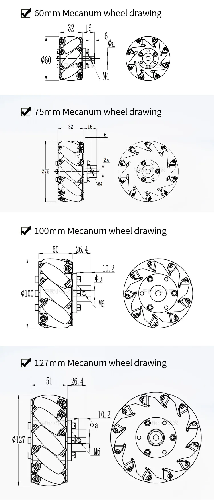 Comprar rueda omni 4ps 60mm Un juego de 4 ruedas Mecanum 60mm