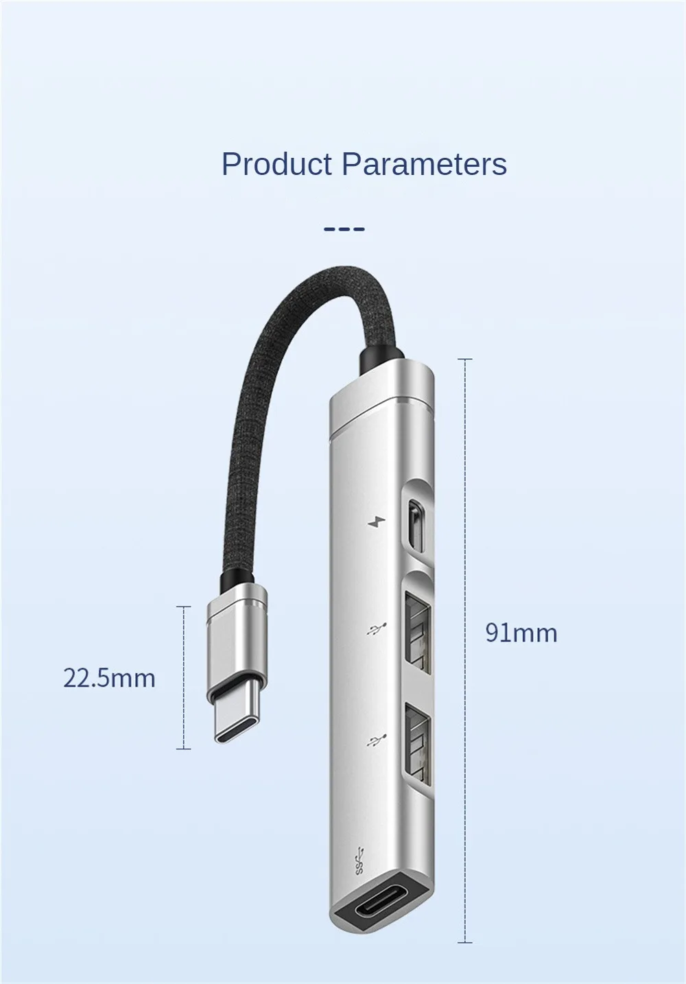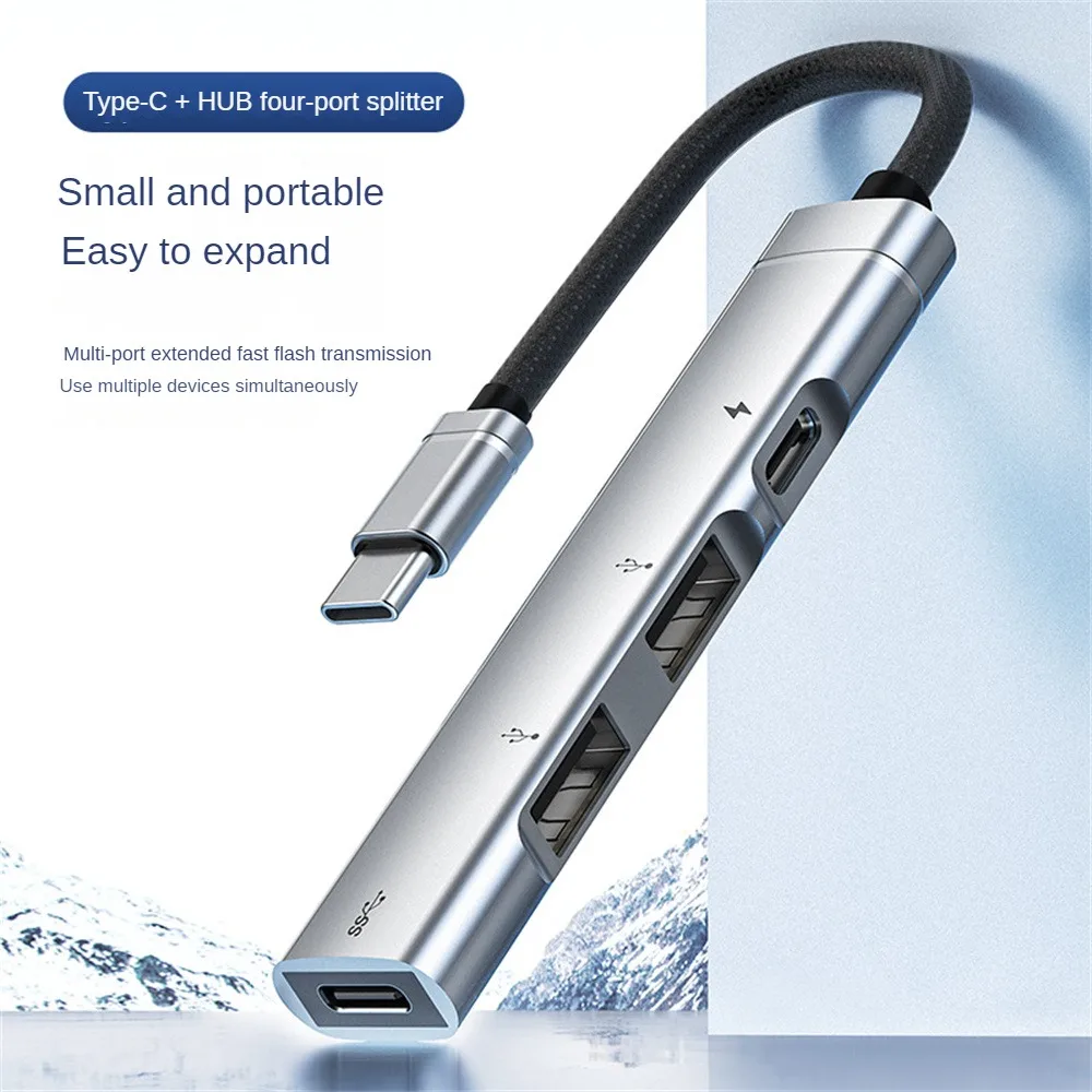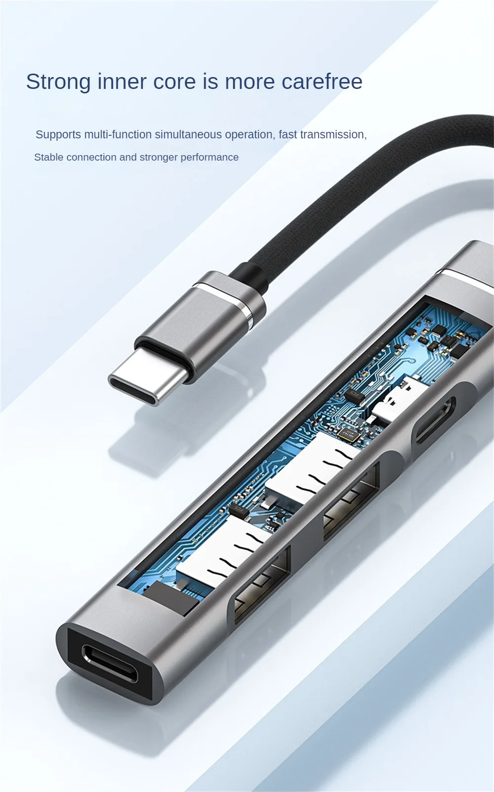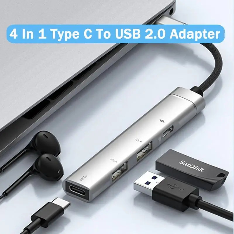 Comprar RYRA-Adaptador de concentrador de red USB 4 en 1, divisor de concentrador USB tipo C a USB2.0, compatible con carga PD para MacBook, Huawei, estación de acoplamiento HUB