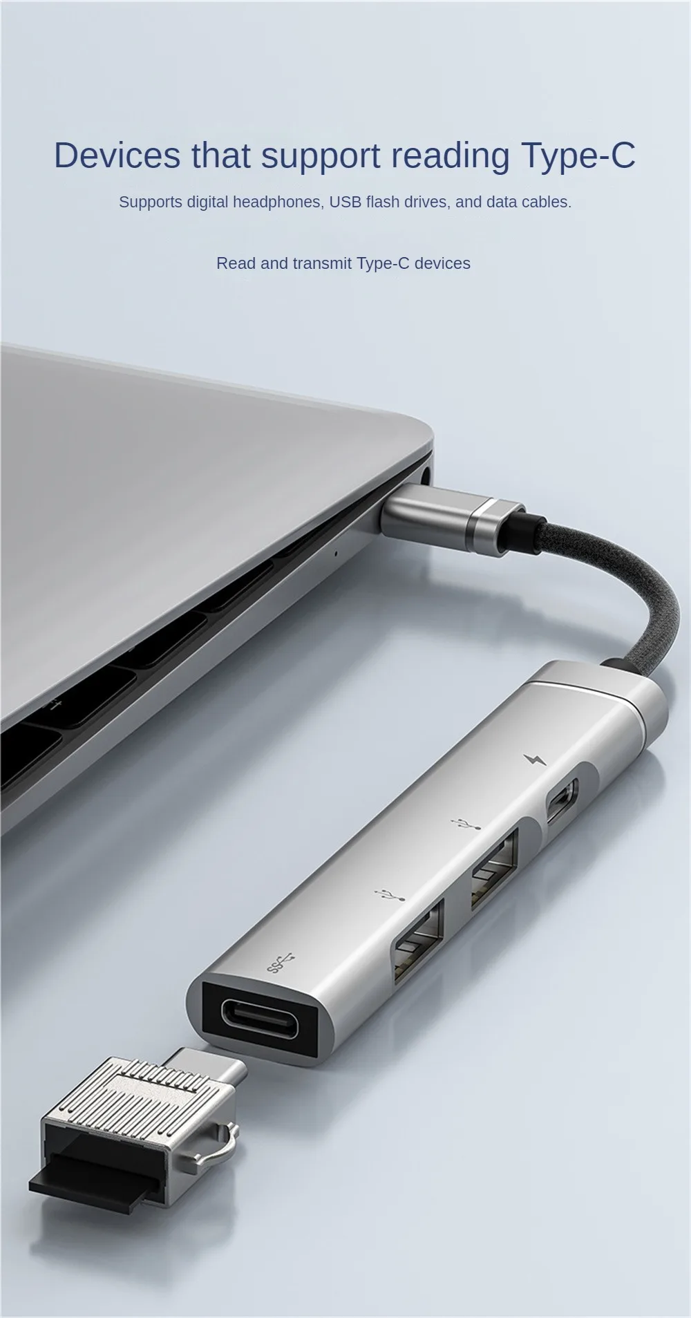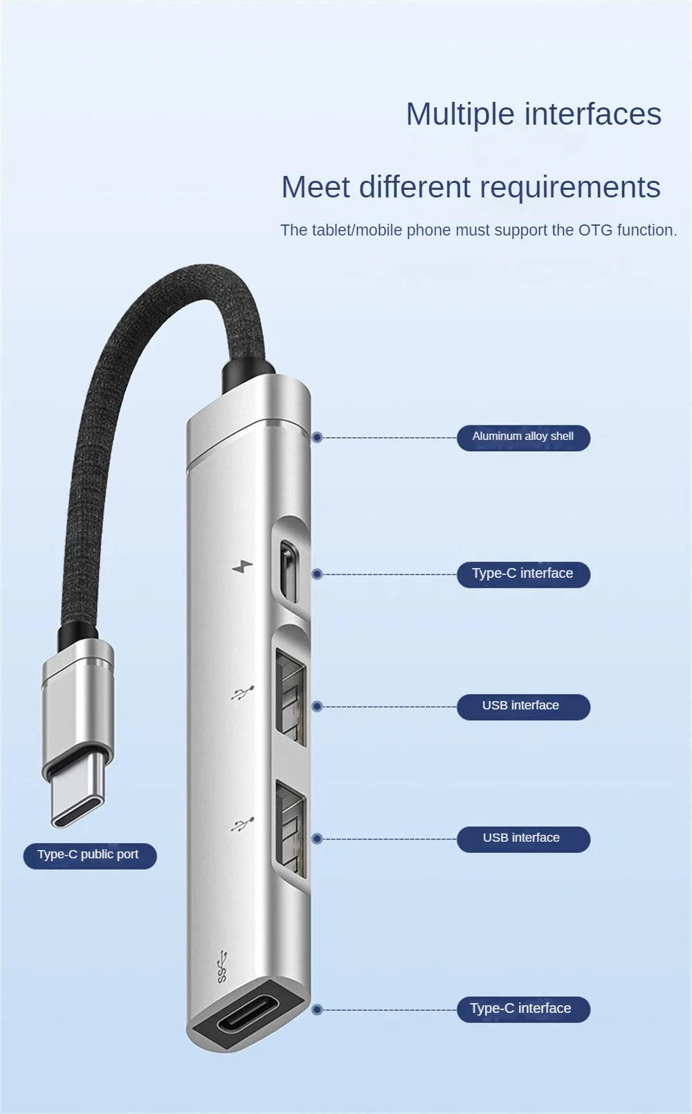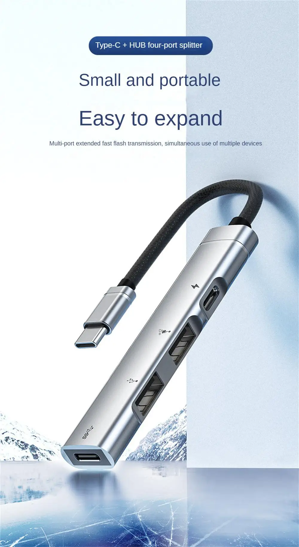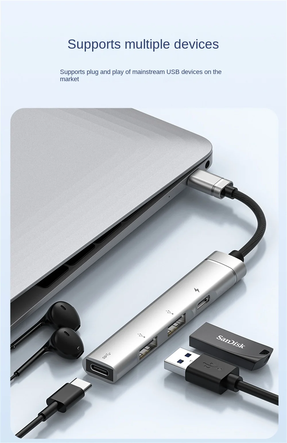 Comprar RYRA-Adaptador de concentrador de red USB 4 en 1, divisor de concentrador USB tipo C a USB2.0, compatible con carga PD para MacBook, Huawei, estación de acoplamiento HUB