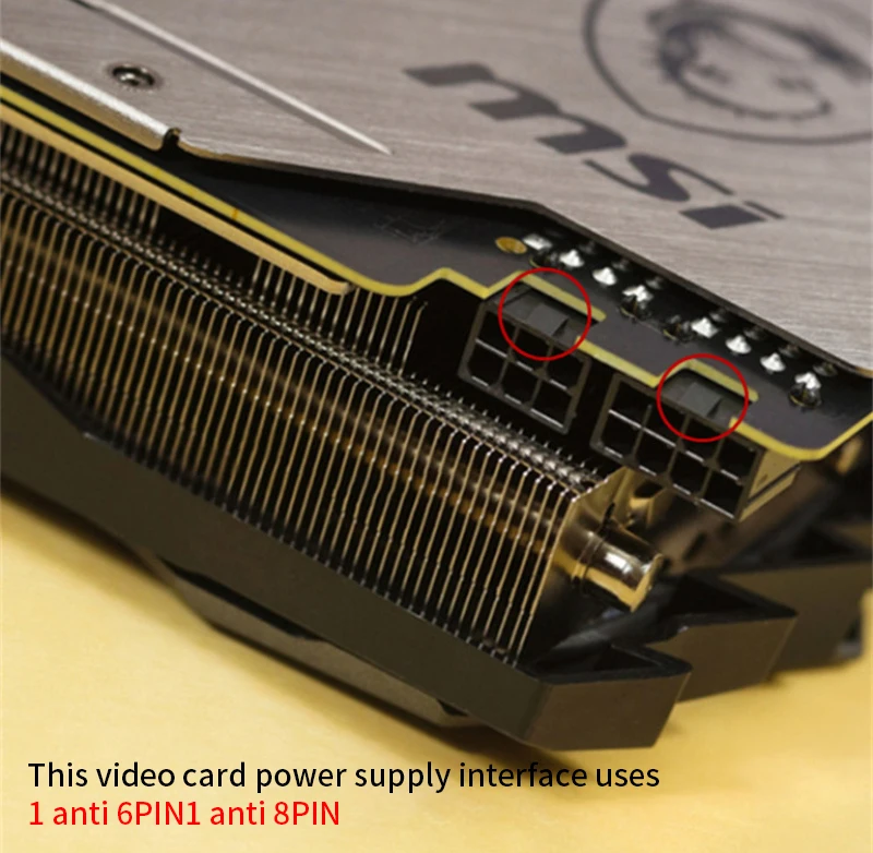 Adaptador de interfaz de alimentación de 6 pines/8 pines, tarjeta gráfica de dirección de 180 grados, conector de alimentación, línea de host, accesorios instalados DIY
