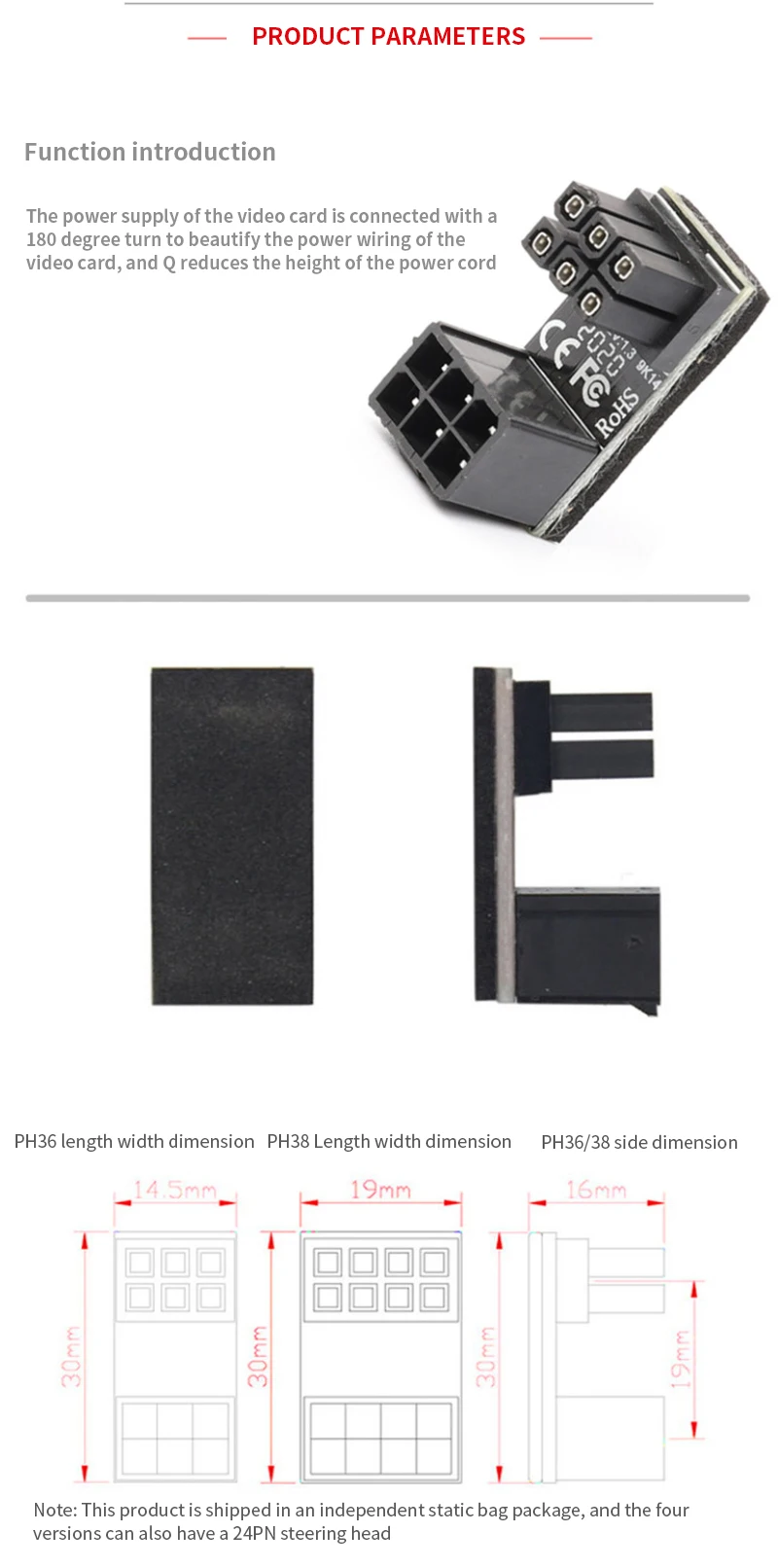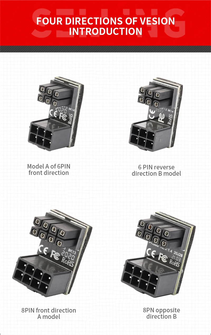 Comprar RYRA-Adaptador de interfaz de alimentación de 6/8 pines, 180 grados, dirección, tarjeta gráfica, conector de alimentación, línea de Host, accesorios instalados DIY