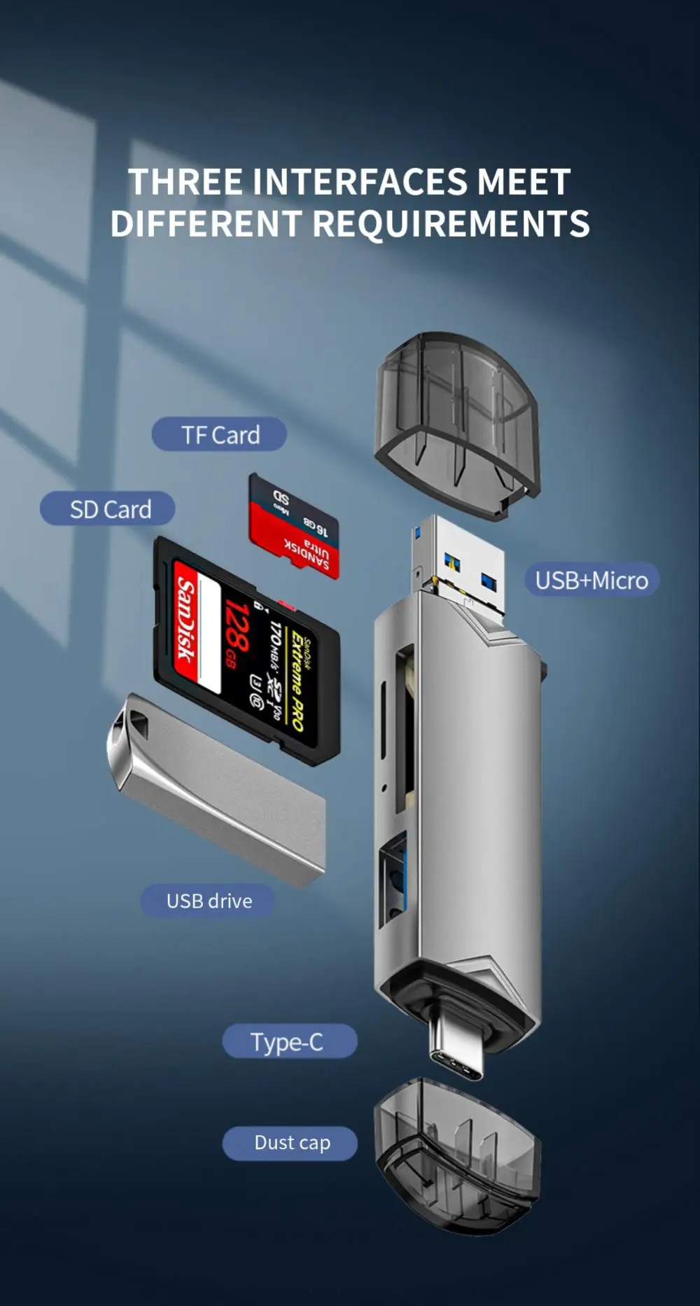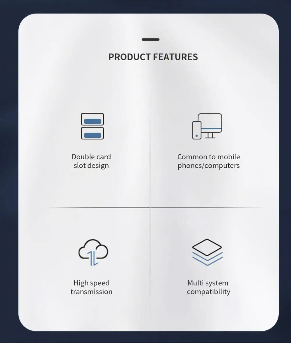 1. 【Diseño multifunción 】conjunto de lector de tarjetas USB 2,0 Puerto USB, Puerto USB y Puerto tipo C, lo que hace que este lector de tarjetas sea compatible con todas las tabletas y teléfonos inteligentes que admiten la función OTG.
