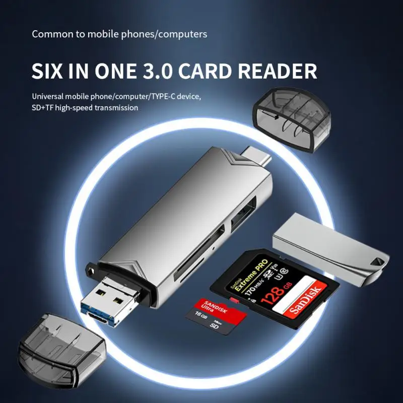 Comprar RYRA-Adaptador de lector de tarjetas 6 en 1, 1 ~ 5 piezas, USB 2,0, memoria Universal OTG, tarjeta TF/SD para PC, portátil, accesorios de memoria inteligente
